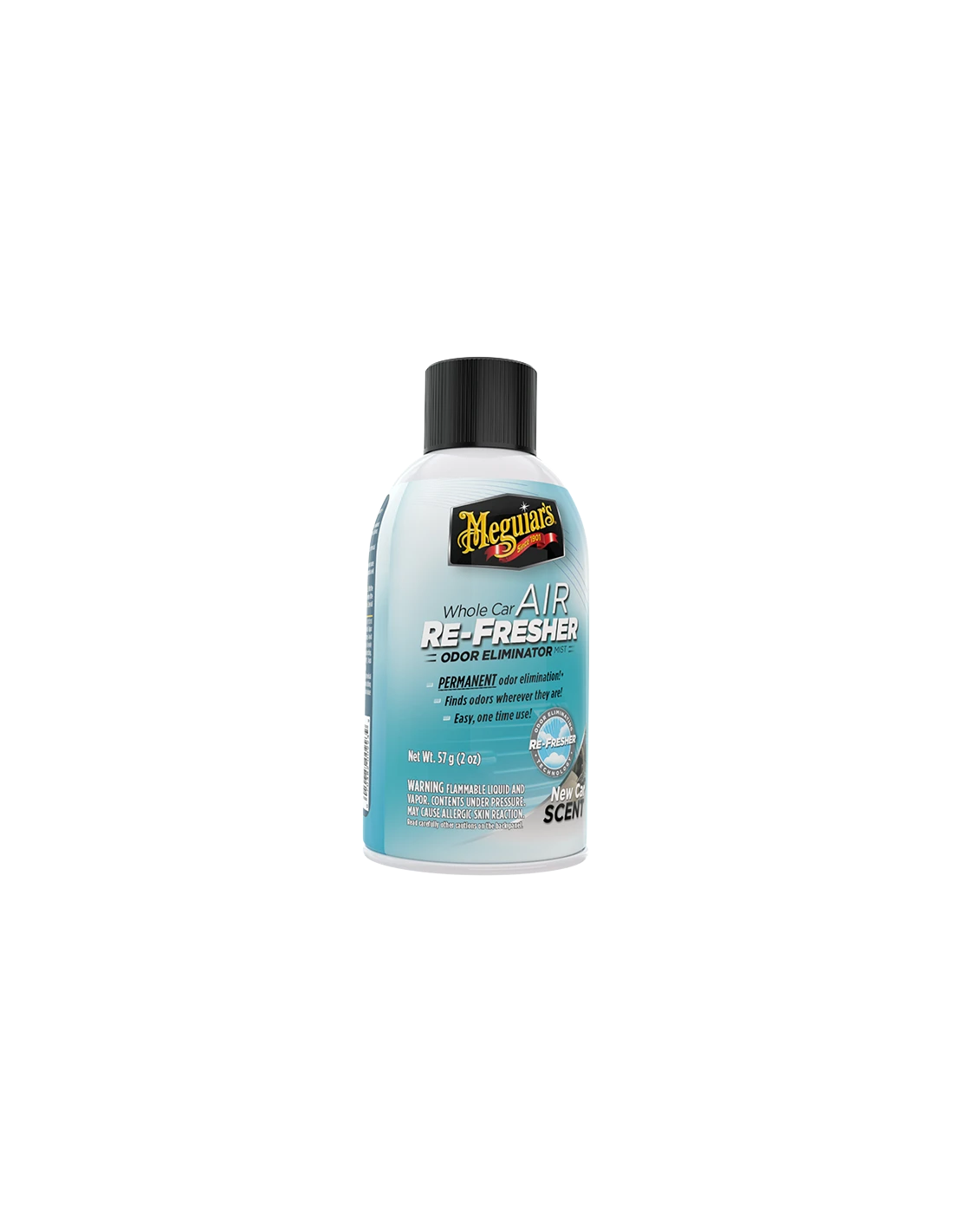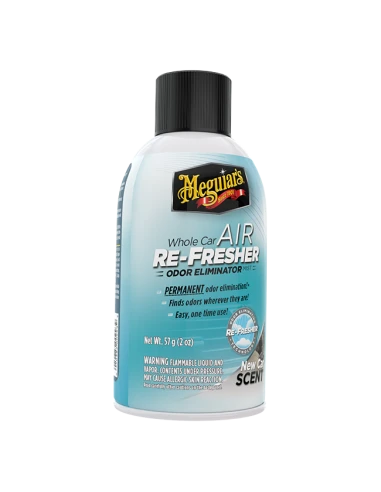 Has your car lost its fresh smell? Now you can enjoy a refreshing scent every time you get in your car. Meguiar’s advanced Re-Fresher technology not only permanently removes unwanted odors wherever they hide, but also replaces odors with a pleasant scent that lasts for weeks. Meguiar's Whole Car Air-Re-Fresher penetrates the complete interior by moving through the ventilation system, across the headliner, and in-between all other hard-to-reach areas. Meguiar's Re-Fresher technology permanently removes existing bad odors through chemical bonding at a molecular level.