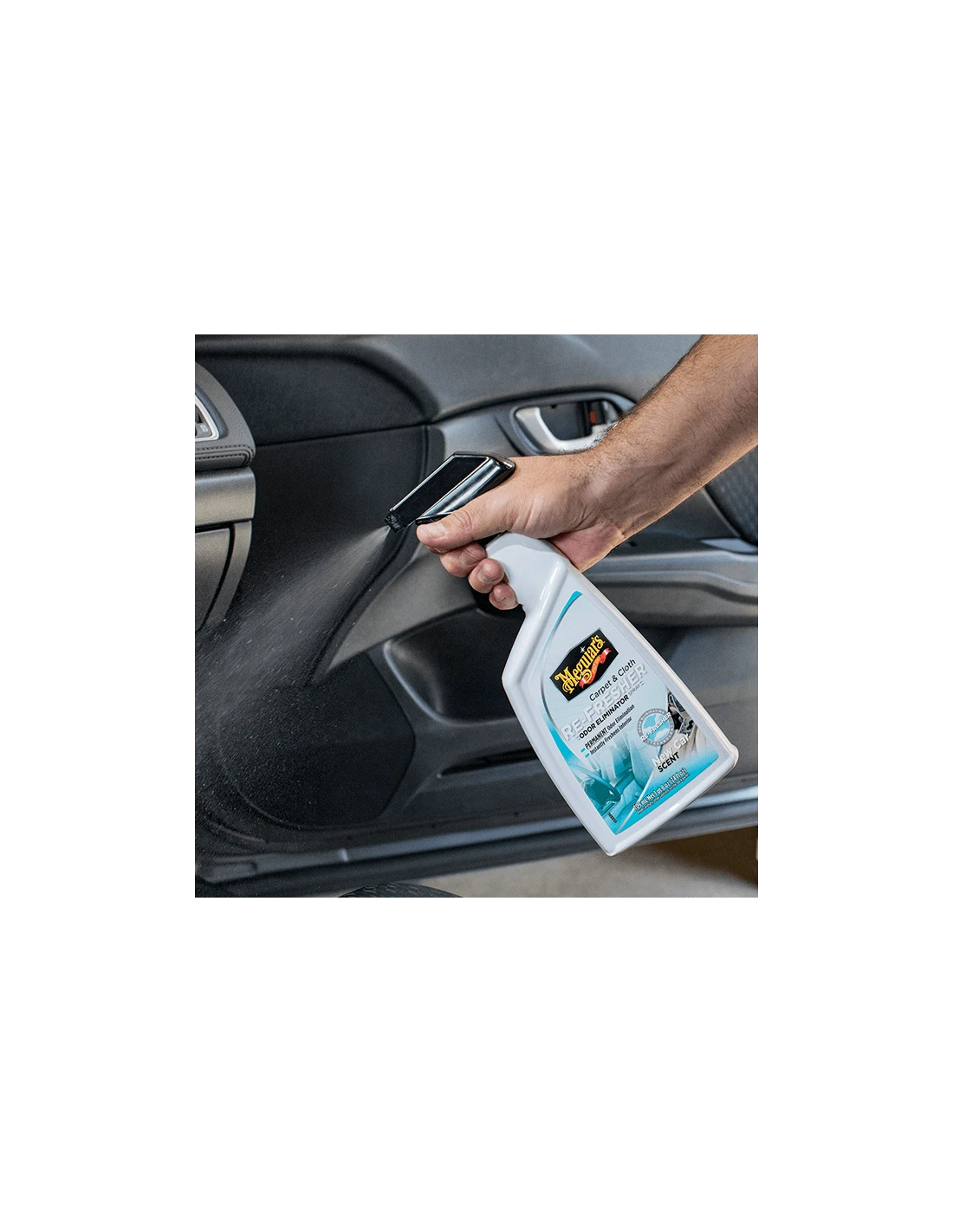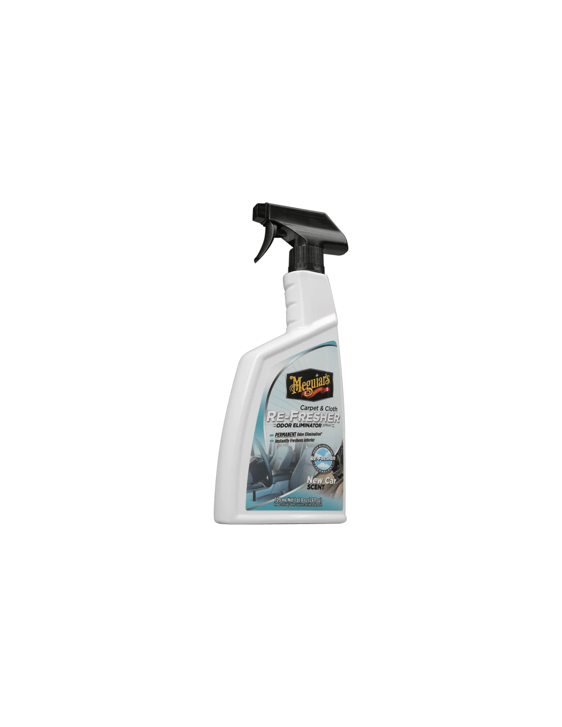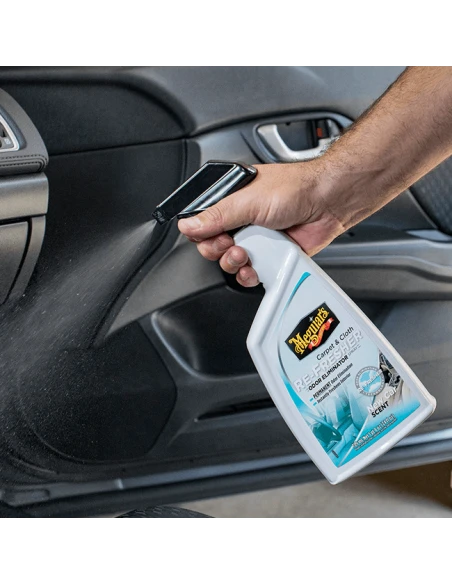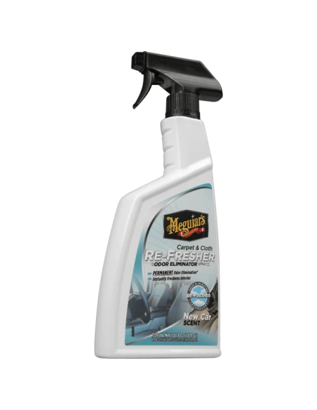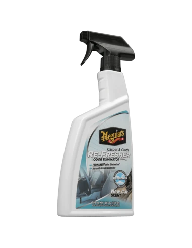 This specialized formula implements Meguiar’s Re-Fresher Technology allowing the Carpet & Cloth Re-Fresher to instantly freshen automotive interiors while permanently removing and eliminating even the toughest of odors instead of just masking or covering them up. Simply spray onto carpet or cloth and allow the product to penetrate and self-dry. With this exciting formula, there’s no need for agitation or rubbing. With no residue left behind upon completion, you are instead left with a clean, refreshed interior and a pleasant new car scent that lasts for weeks at a time.