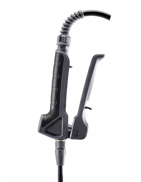 clamped crosswise under the lance holder on the filling funnel.The large filling funnel with ergonomically shaped recessed grip and spout makes filling and emptying easier. An efficient pump with a handle and a