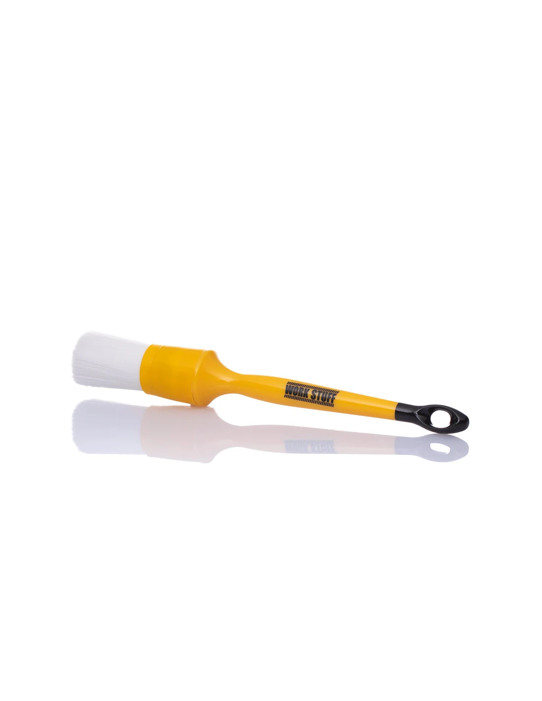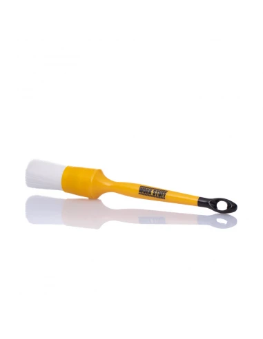 Delicate cleaning brush. It’s perfect for prewash, as well as cleaning the interior of the car (eg. the steering wheel or leather decors, especially when cleaning the leather in hard-to-reach places). The brush handle is made of varnished plastic. The bristles are made of synthetic material and they come in white.