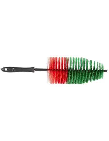This soft alloy wheel brush has long bristles, a shielded plastic wire, and with protective end cap. Ideal for cleaning alloy wheels. The end is finished with a rubber cap, which protects against scratches. Brush bristles are selected in such a way that they hold water and foam well when washing and at the same time do not cause splashing of dirt and chemicals.