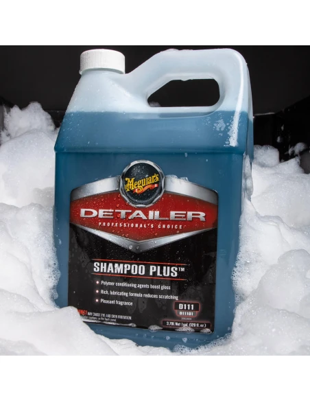 Meguiar’s Shampoo Plus lubricating formula and luxurious foam team up to gently clean and condition even the most delicate clear coat surface without scratching. Its biodegradable conditioning formula deepens gloss, boosts shine, and leaves a highly reflective, slick surface, making it the perfect choice for the ultimate car wash.