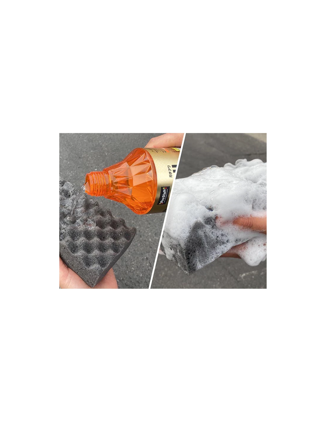 High cleansing no-dilution shampoo. During cleaning, dirty areas are covered with a thick and flexible foam. What's more, thanks to the innovative action of deeply penetrating substances and orange oil, it allows you to get rid of stubborn stains, discoloration and insect stains. It removes impurities quickly and effectively, although it does not contain chemical compounds. In addition to the bodywork, it can also be used to wash the wheels to get rid of stubborn oil stains.