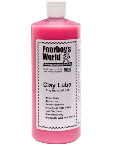 Poorboy's World Clay Lube is the slickest detailing clay lube available. We designed this Clay Lube with ease of use in mind because it doesn't streak or smear and it can be used in the sun or in the shade. Our Clay Lube is the perfect lubricant to use with Poorboy's World Poly-Elastic Detailing Clay and will also make clay bars from other manufacturers even easier to use because of its superior slickness. Our exclusive formula provides excellent lubricity for you detailing clay bar or clay towel, significantly reducing the risk of marring. Don’t waste time washing your vehicle again after claying, with Poorboy’s World Clay Lube, all you have to do is wipe away to a clean, polish-ready surface!