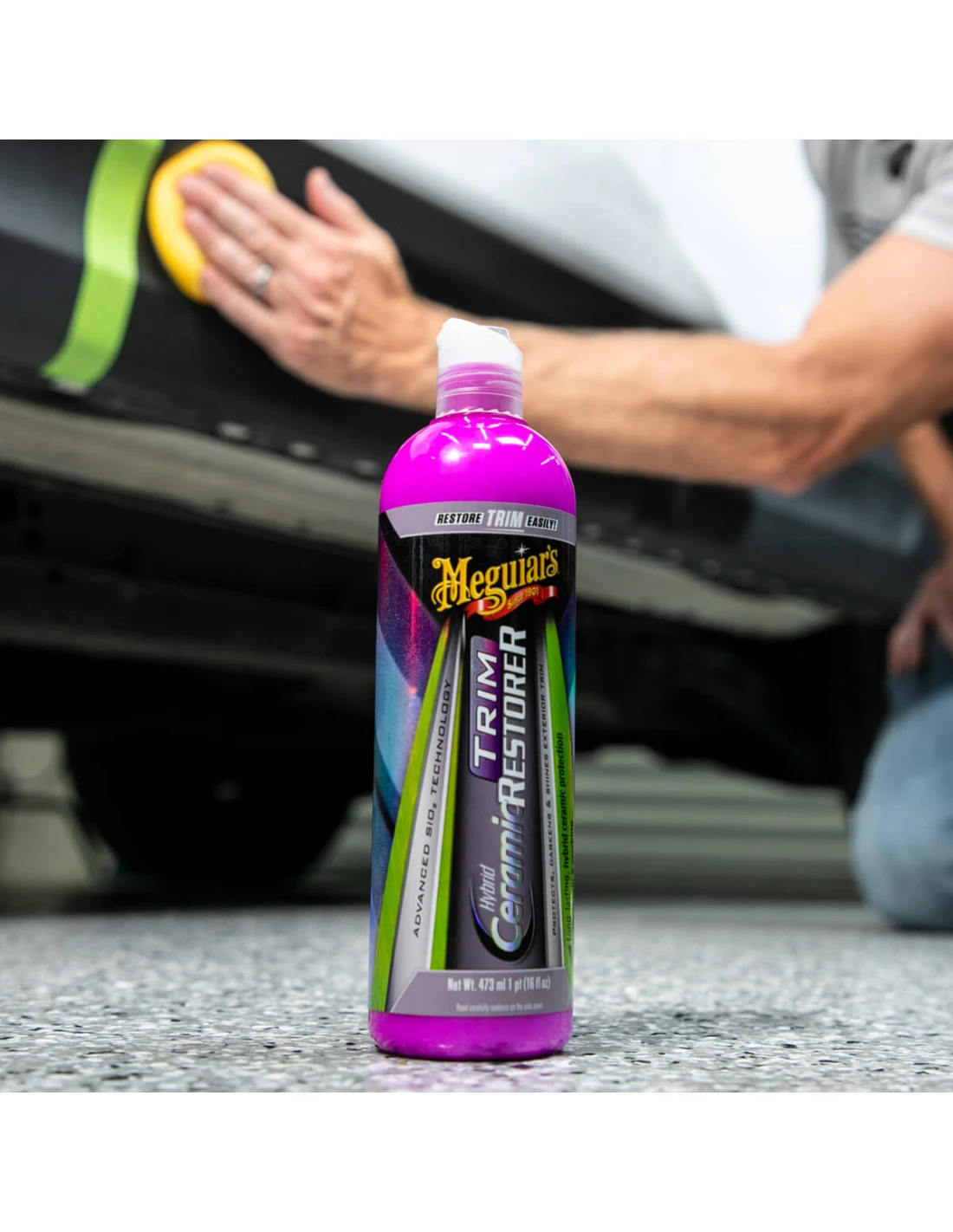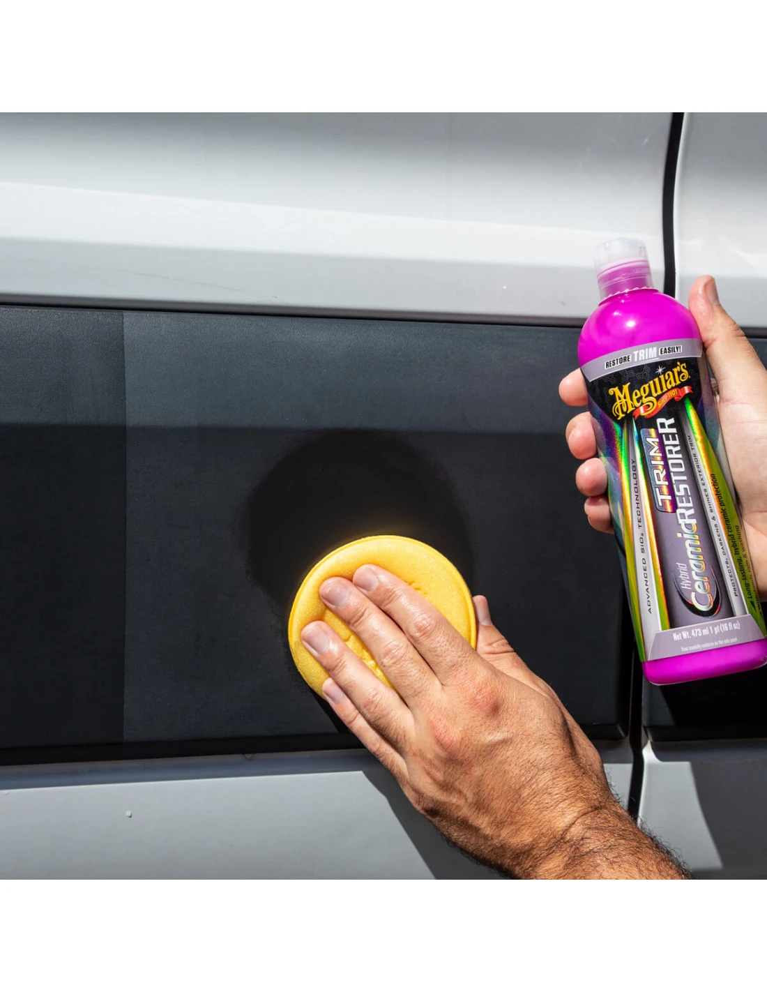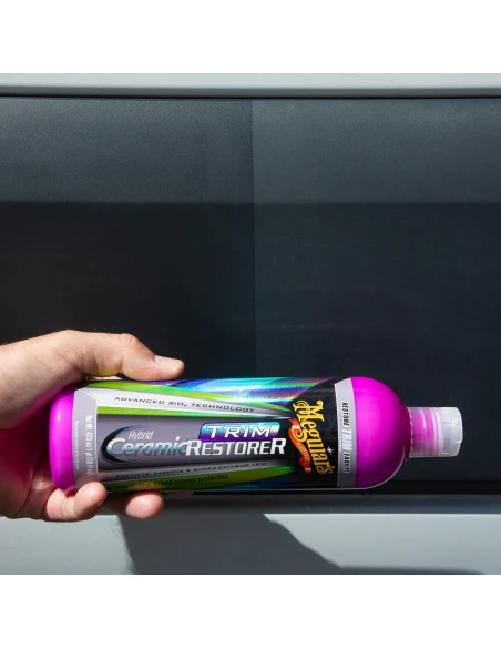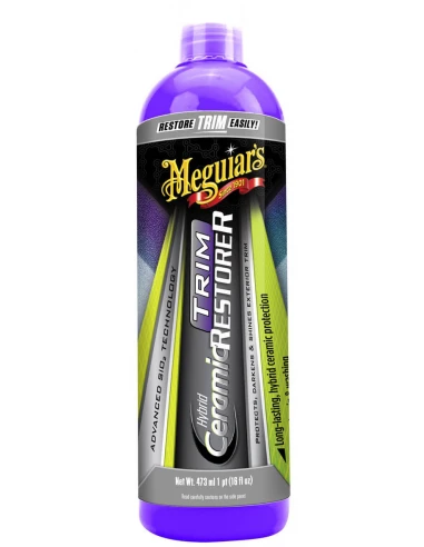 Meguiar's Hybrid Ceramic Trim Restorer renews, revives, and protects unpainted exterior trim quickly and easily. Using advanced SiO2 technology to create a restored appearance on exterior car trim that holds up against washing, rain, and the elements. Hybrid Ceramic Trim Restorer brings new life to all exterior unpainted plastic, vinyl, and rubber trim such as bumpers, moldings, door handles, rearview mirror housings, and windshield cowlings. So, if your exterior plastic and vinyl are faded, making your car look older than it really is, restore trim pieces with durable richness and shine that lasts!