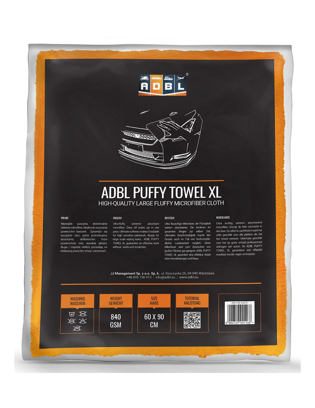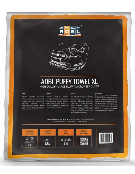 Ultra-fluffy, extremely absorbent microfiber. Dries off the entire car in one pass. Ultimate softness makes it suitable for highly sensitive paintwork. Ready for large-scale wiping tasks. ADBL PUFFY TOWEL XL guarantees effective work without swirls and scratches.