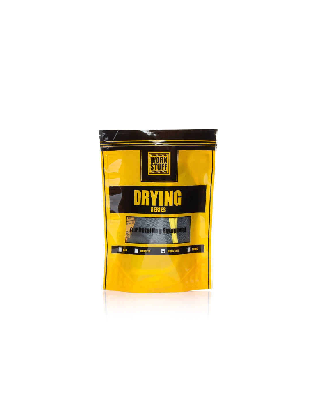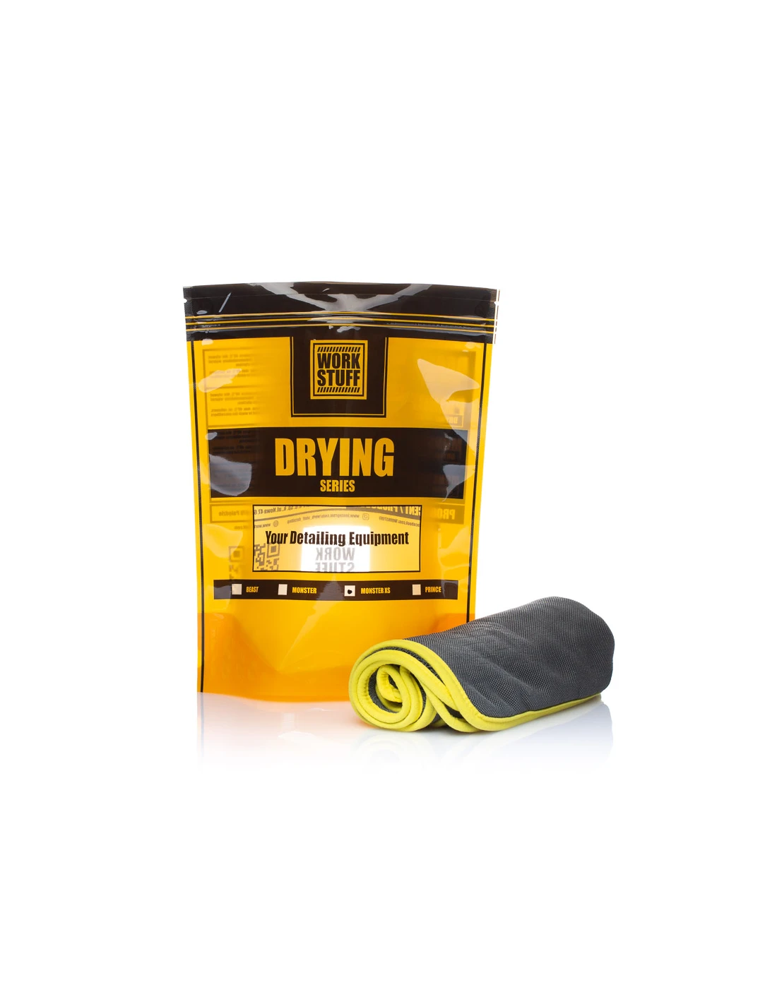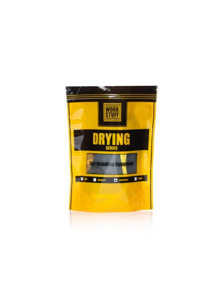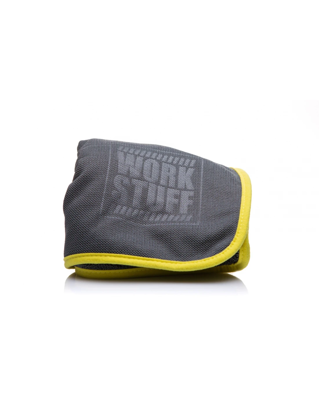 A modern type of drying towel with a unique type of Korean "Twisted Pile" fiber. It is characterized by a very high absorbency and quick-drying fiber. The dense and delicate microfiber structure doesn’t leave scratches and is safe for any type of varnish. Due to its size, it’s ideal for drying hard-to-reach places and all the nooks and crannies. High-quality fiber allows you to work without the risk of leaving streaks on the car's paintwork. The towel has a laser-cut WORK STUFF logo and fabric trim on the edges. A compact version of the MONSTER Drying Towel.