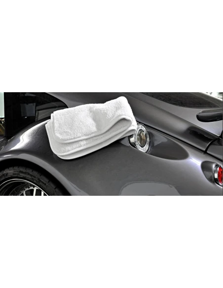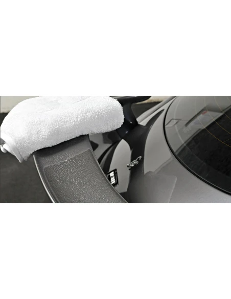 This car drying towel was one of our favorite milestones! It was created in 2010 and raises the bar with regards to drying towels still to this very day! It is made of durable, super-soft microfiber for risk free drying and delivers best in class water absorption. To reduce any risk of scratches, the towel was made with microfiber edges instead of the more common silk edges. And even if it looks silly, we decided for a white colored fabric to make any unwashed parts of the car visible. The entire sewing and assembly is completed right here in Germany.