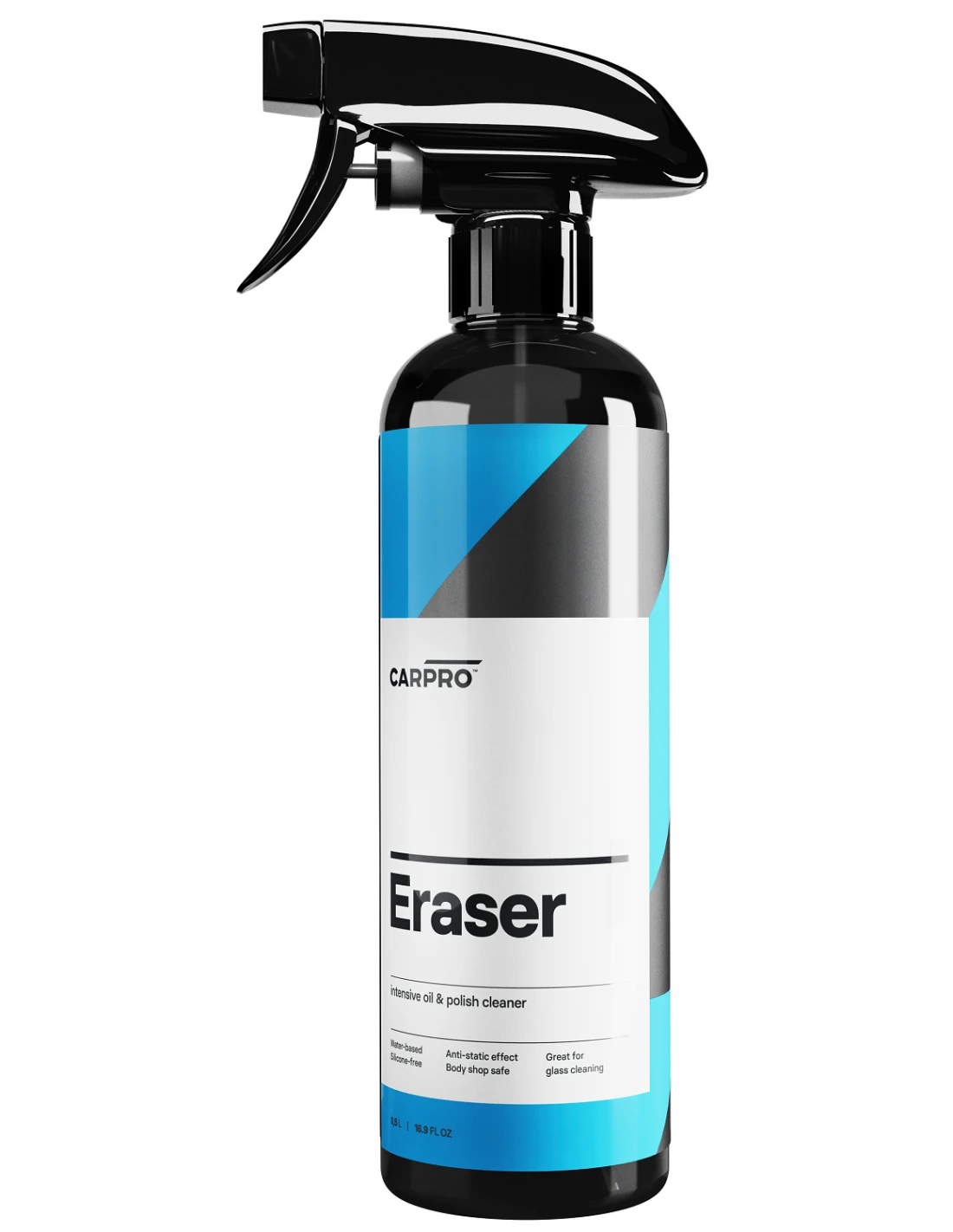 Eraser can also be used as a post-polish inspection fluid to remove fillers and product residues, as well as a cleaner for automotive glass to remove heavy nicotine or traffic films. Eraser’s special blend of alcohols and surfactants is safe to use on delicate surfaces, and contains no harmful petroleum distillates.