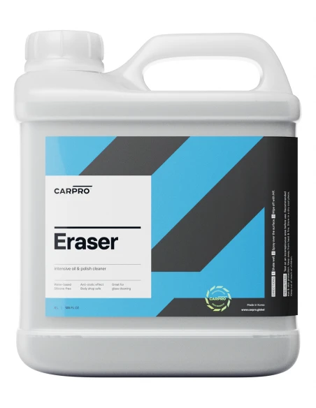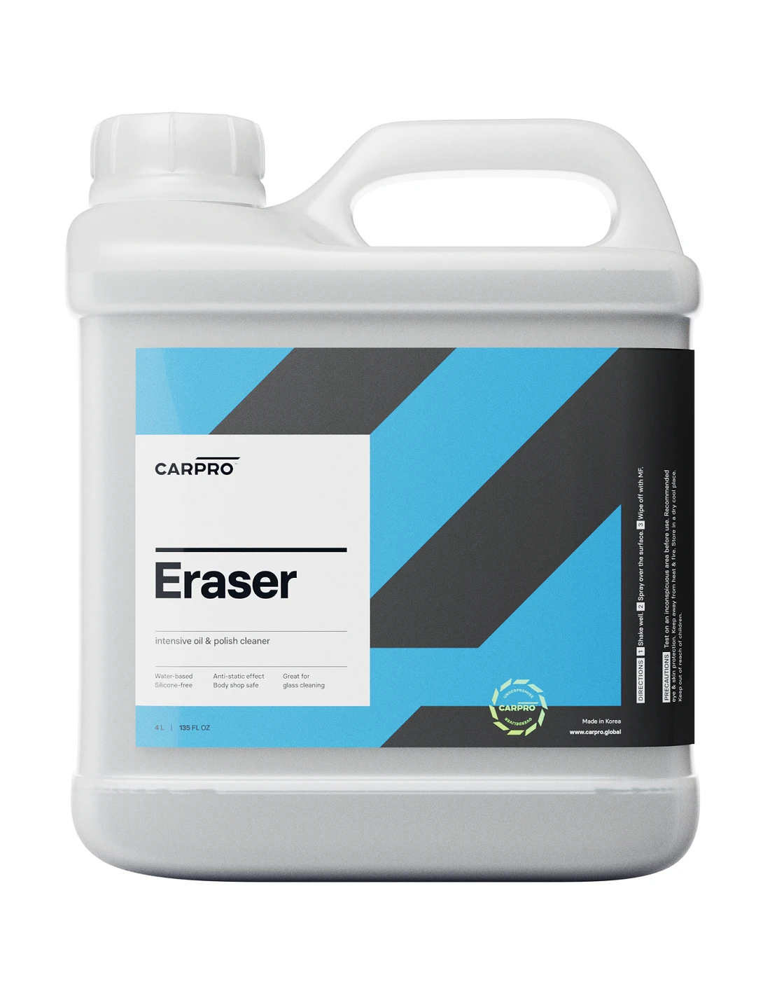 Eraser can also be used as a post-polish inspection fluid to remove fillers and product residues, as well as a cleaner for automotive glass to remove heavy nicotine or traffic films. Eraser’s special blend of alcohols and surfactants is safe to use on delicate surfaces and contains no harmful petroleum distillates.