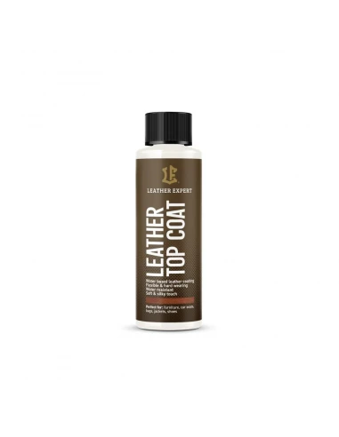 Polyurethane finishing for natural leather and faux leather. Top Coat preserves the color and increases the leather's resistance to damage, moisture, and weather conditions.