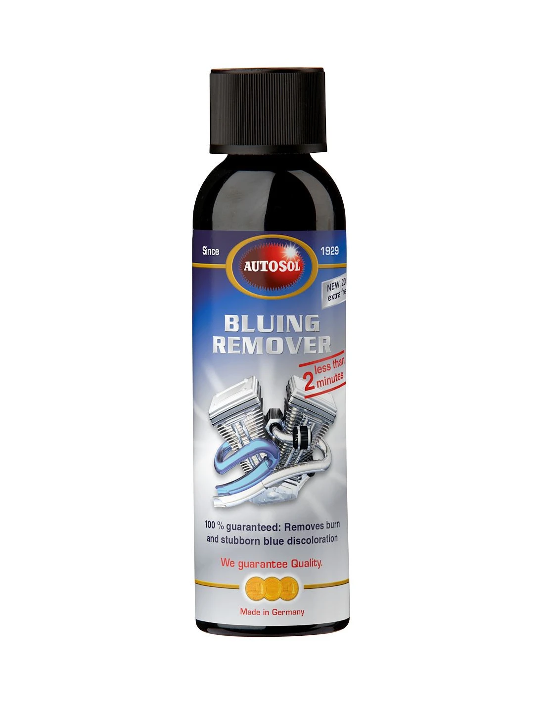 The Autosol Bluing Remover is specially formulated to remove bluing and heat-caused discoloration. It removes the burn from titanium and stainless steel motorcycle tips, car exhausts, stainless steel welds, and other industrial metals and restores them to their original shine. The blend of chemicals and abrasives removes even persistent discoloration. Corrosion inhibitors eliminate the risk of damage to unstained surface areas.