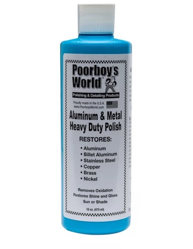 Poorboy’s World Heavy Duty Aluminum & Metal Polish (we just call it A&M for short) is a heavy duty metal polish made to restore shine and high gloss to worn and oxidized aluminum & metal. Poorboy’s A&M can be used by hand or machine, in sun or shade. It's silicone and wax free making our HD Aluminum & Metal Polish body shop safe.