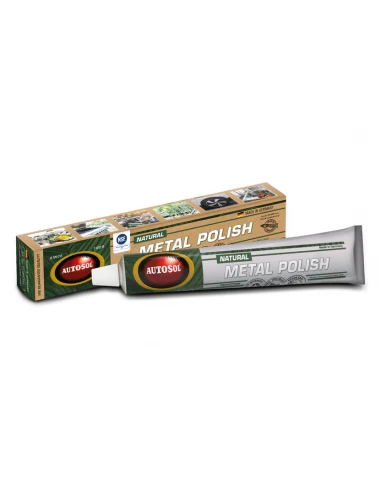 AUTOSOL® NATURAL METAL POLISH Developed with heart and soul. Using recycled, vegan ingredients, AUTOSOL® has created the world's first natural metal polish. Without compromising on performance and quality. A polish suitable for almost all metals such as stainless steel, aluminum, chrome, brass, copper, nickel, etc. From our production to packaging, we have reused and recycled as much as possible. AUTOSOL® NATURAL METAL POLISH contains no harsh chemicals and is therefore better for you and our planet.