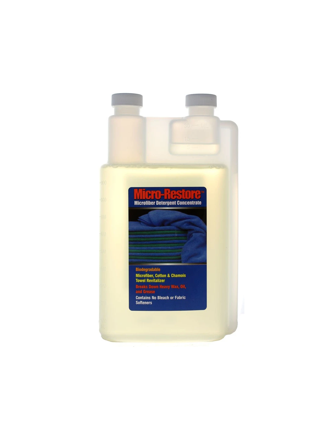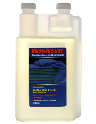 Not only will Micro-Restore extend the life of your microfiber, but the microfiber towel detergent's special blend of cheleating agents, surfactants, and builders will more effectively remove the heavy residue (wax, oil, grease, break dust, and other chemicals) that becomes implanted in microfiber products when used in heavy cleaning situations (car care).