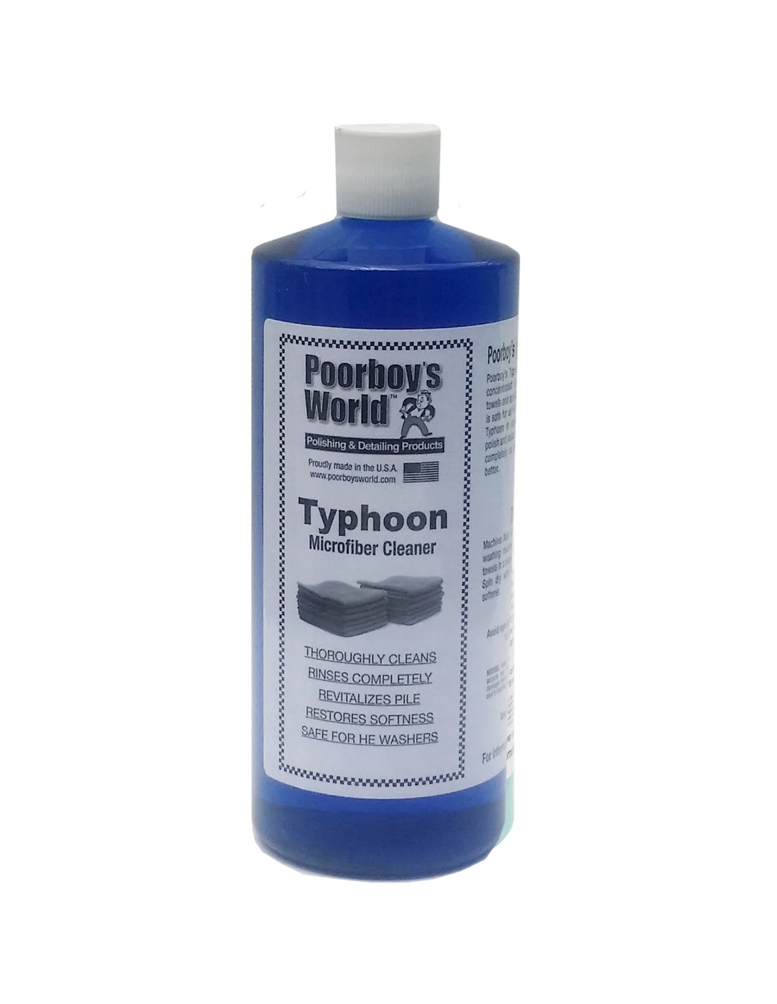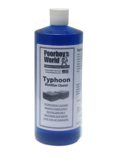 Poorboy’s World Typhoon Microfiber Cleaner is a highly concentrated detergent that cleans all microfiber towels, microfiber pads and microfiber applicators. This is a low suds formula that is safe for all HE (High Efficiency) Washing Machines. Typhoon is especially effective at removing wax, polish and sealant residue from the fibers and it rinses completely so towels will feel softer and perform better. Regular laundry detergent isn't formulated to break up and dissolve the wax, sealant, compound and polish residue found in microfiber towels that are used for polishing and detailing.