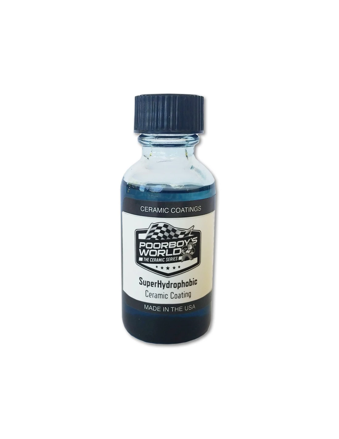 Poorboy's SuperHydrophobic Ceramic Coating is an easy to apply nano ceramic coating for smooth surfaces that include clearcoat, glass, plastic and chrome. This state- of-the-art formula features SiO2 nano-particles suspended in a rugged, yet flexible thermoplastic resin that bonds to the surface to form a resilient ceramic layer. Just as the name implies, SuperHydrophobic Ceramic Coating provides superior water repellency with high contact angle water beading. Surfaces coated with SuperHydrophobic Ceramic Coating are scratch, wear and chemical resistant with protection that lasts up to 3 years. With an extreme high gloss finish, superior protection and easy to use application, Poorboy's World SuperHydrophobic Ceramic Coating bridges the gap between consumer and professional ceramic coatings.