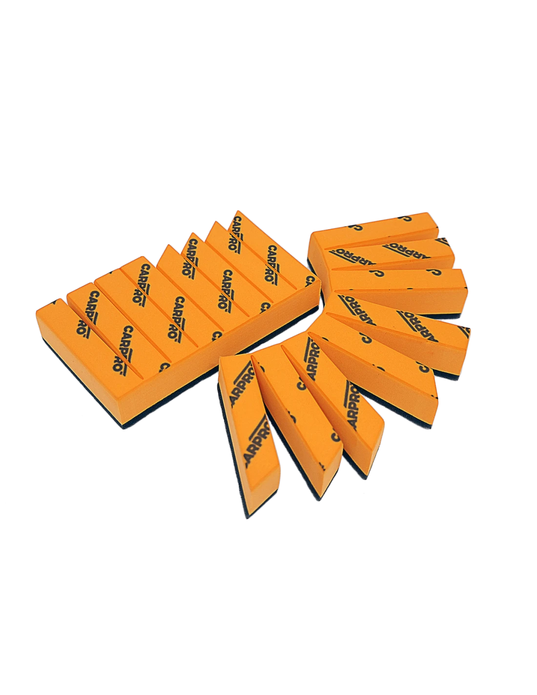 The new Car Pro 8Finger Block gives you 8 small foam block applicators to make your ceramic coating application a breeze! The 8Finger block consists of 4 small straight edge applicators and 4 small beveled edge applicators which will allow you to coat in and around all those hard to reach areas with ease!
