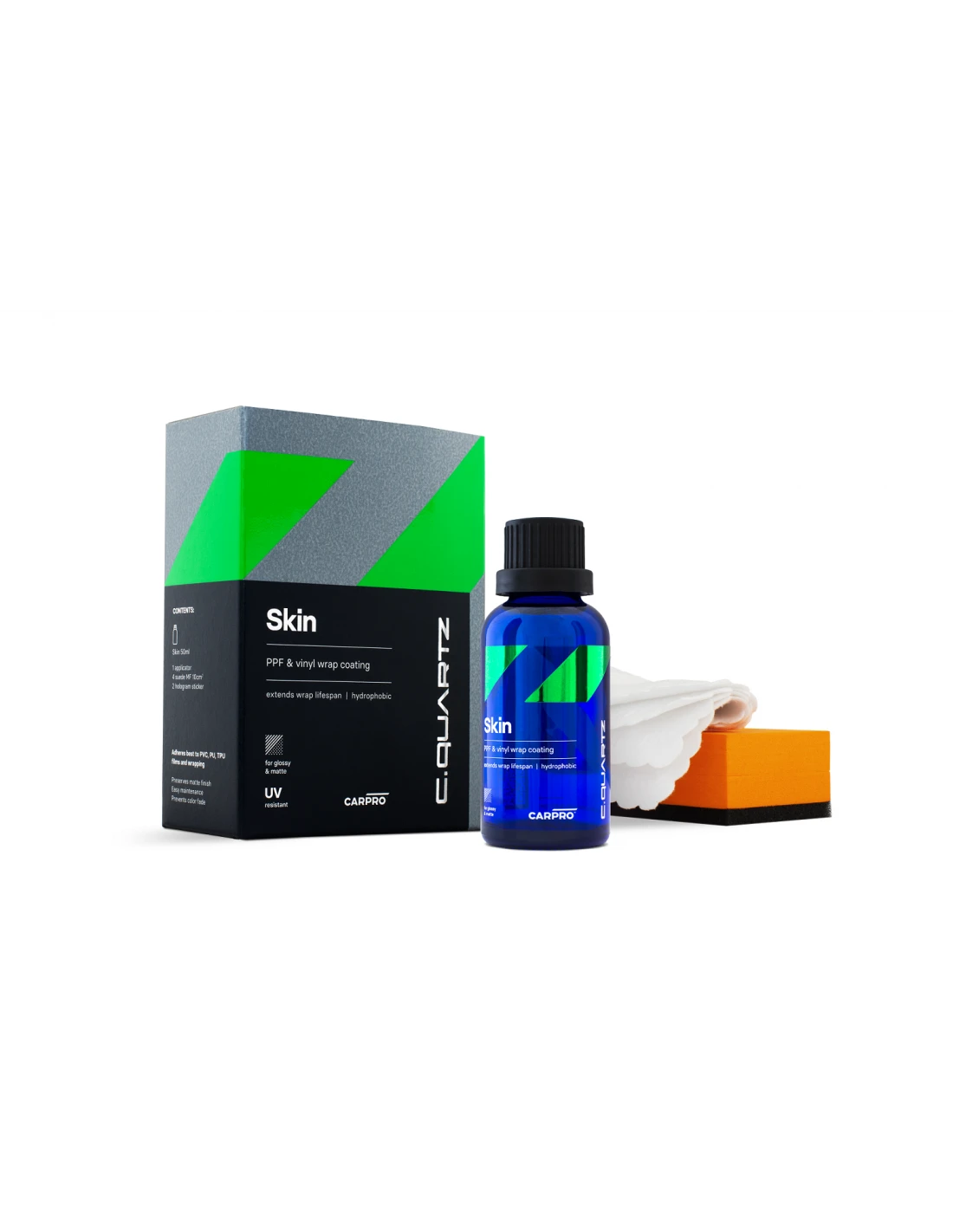 CQUARTZ SKIN applies easily to properly prepped surfaces and can even be used on matte and satin wraps when used as directed! CQUARTZ SKIN features easy use in all climates, wiping on and off with ease for anyone trained in coating application.