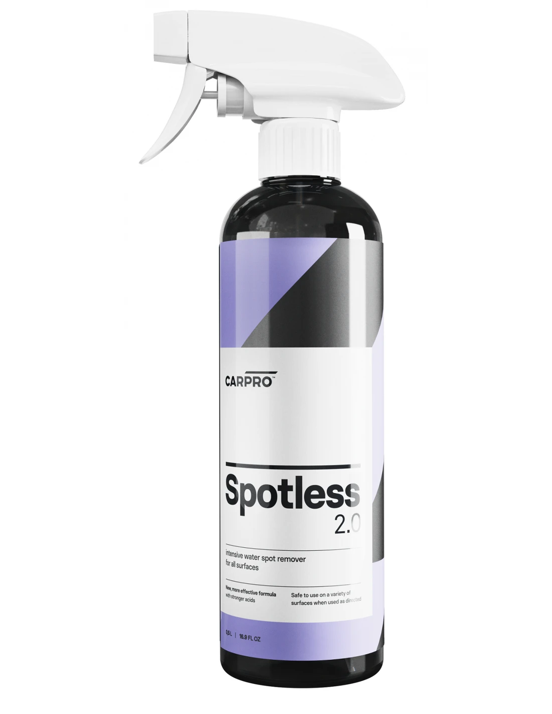 Spotless 2.0 uses an upgraded chemical formula with stronger acids to break down the mineral deposits on the surface before they can etch into the finish, thus negating the need for time-consuming polishing, prolonging the life of the paint film.