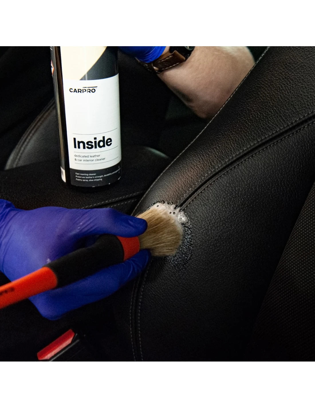 It is strong enough for tough cleaning jobs, yet gentle enough for even the finest of leather. Its non-greasy fast action will not damage the sensitive leather dye coat. This helps to preserve the leather's strength, durability and appearance. Inside can be used on a variety of surfaces such as upholstery, plastic vinyl and wood. You can even use it on your leather clothing to remove stains. If you want to restore its rich look and feel with ease, Inside will do the trick. Whether applied in the car or around the house, it will guarantee cleanliness and natural appearance.