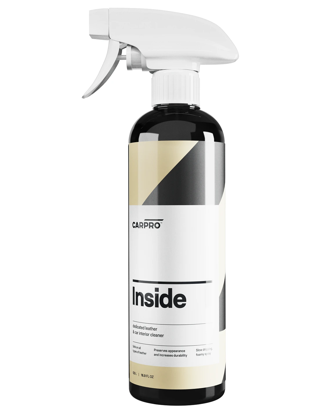 Incredible new cleansing solution for vehicle interiors of many shapes and sizes! INSIDE is specially formulated to clean vinyl, plastic, finished leather and a variety of interior surfaces! Utilizing a high foaming mix of proprietary surfactants and gentle detergents, Interior is able to easily remove dirt, sweat, oils, and all manner of soling on interior surfaces.
