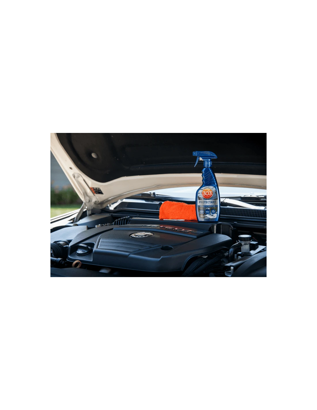 Use only on clean surfaces. Out of direct sun, spray surface with 303® Automotive Protectant and WIPE COMPLETELY DRY with a clean, dry microfiber towel. Can also be applied directly onto microfiber applicator or towel before using. If streaking occurs, too much product has been used. Use a wet towel to remove excess, IMMEDIATELY wipe completely dry.