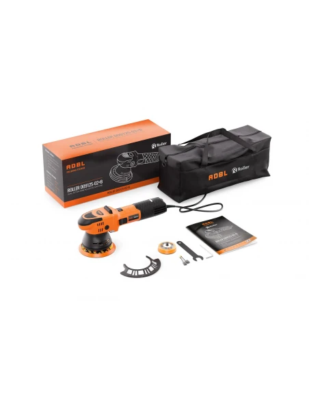 The low weight and compact construction of the ADBL Roller D09125-02 machine allow the user to reach areas that were previously inaccessible to devices of this kind. The short head and sturdy body enable work on demanding elements such as bumpers or aerodynamic packages. The 9 mm throw, combined with suitable polishing materials, ensures a perfect finish of the polished surface. The powerful motor and rotational stability during operation and gear changes enable quick achievement of the desired level of paint correction. The Soft Start system, ergonomic design, and long, flexible power cord support the user during extended hours of work, while the well-thought-out and proven construction guarantees trouble-free operation.