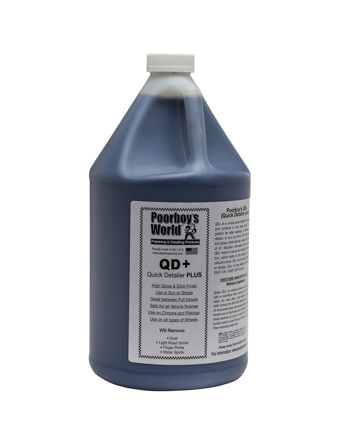 Maintain your vehicle’s showroom shine with Poorboy's World QD+. It's the perfect quick detail spray on wax for touch-ups and added gloss after waterless washing. Just spray and buff to remove light dust, fingerprints, smudges, and smears. Use Poorboy’s World QD+ anytime your paint needs a boost. The super slick polymers and natural carnauba enhance the existing paint protection while improving the paint’s gloss. Your vehicle stays protected longer!