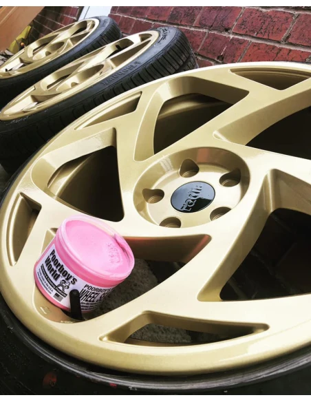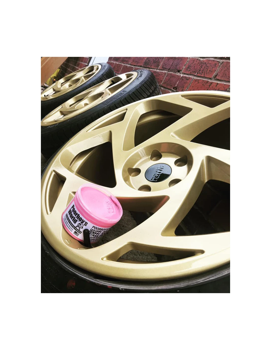 Protect your wheels with Poorboy's World Wheel Sealant . It's a long lasting, easy to apply formula for protection against brake dust and the environment.Wheel Sealant does not allow brake dust to stick and bond to the wheel so cleaning them is much easier. In fact you may only need soap and water for wheel cleaning!