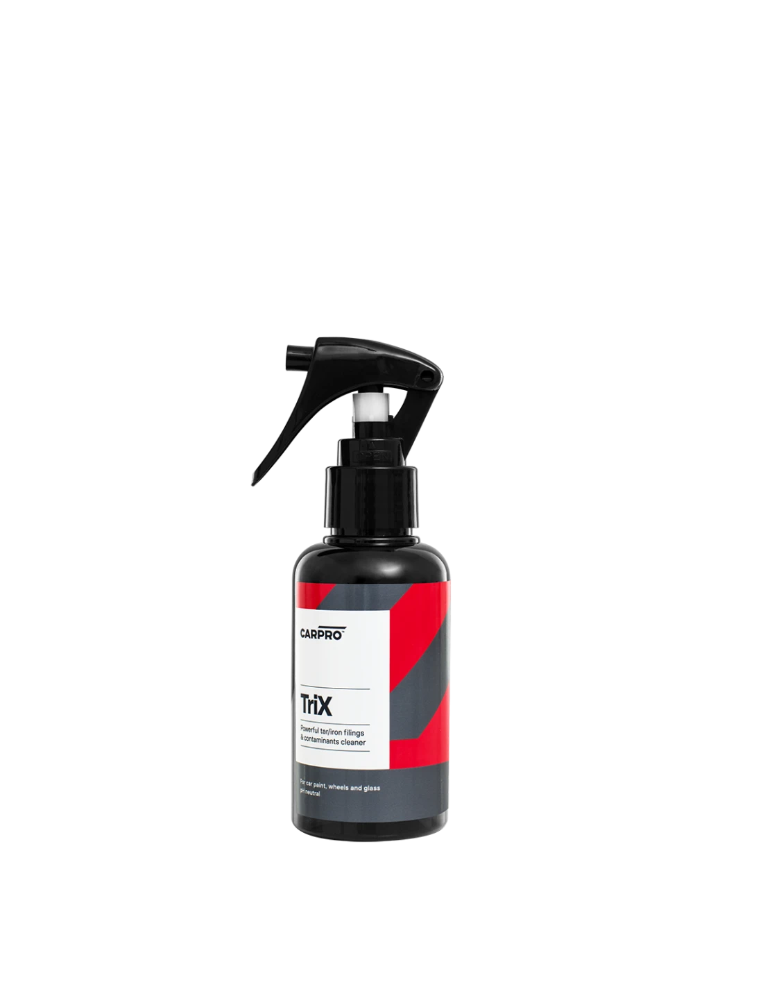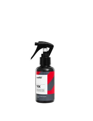 Blending the iron removing the power of IronX with the tar- dissolving capabilities of TarX. CARPRO TriX combines your vehicle decontamination needs into a single effective product. Perfect for time-pressed DIY or professional detailers, TRIX’s pH-balanced (pH-7) formula safely dissolves both organic and inorganic fallout in 1-step; thus streamlining the detailing process and saving time and money on full details. TRIX is ideal for use on most vehicle surfaces and is a customer favorite for the rapid deep- cleaning of alloy wheels.
