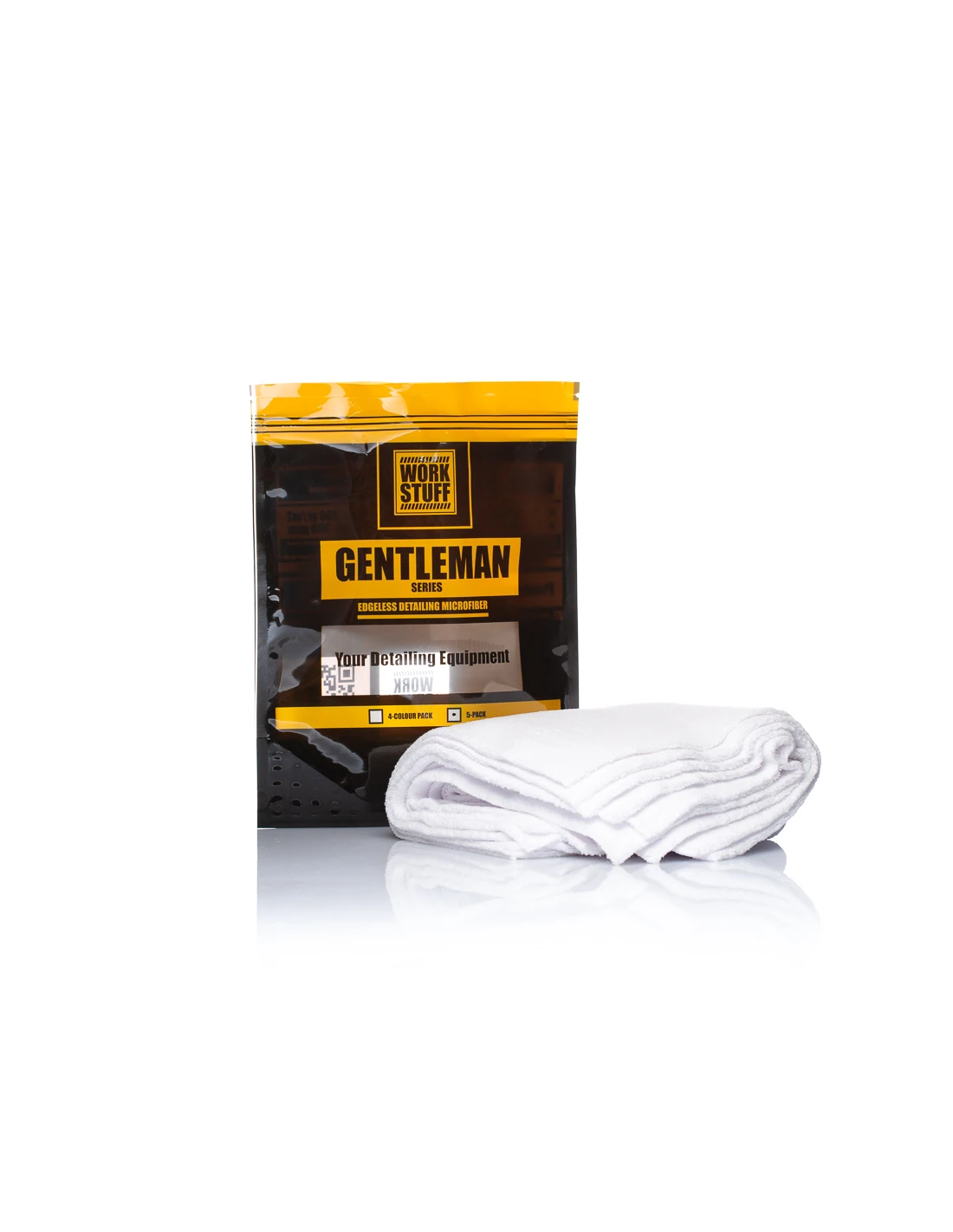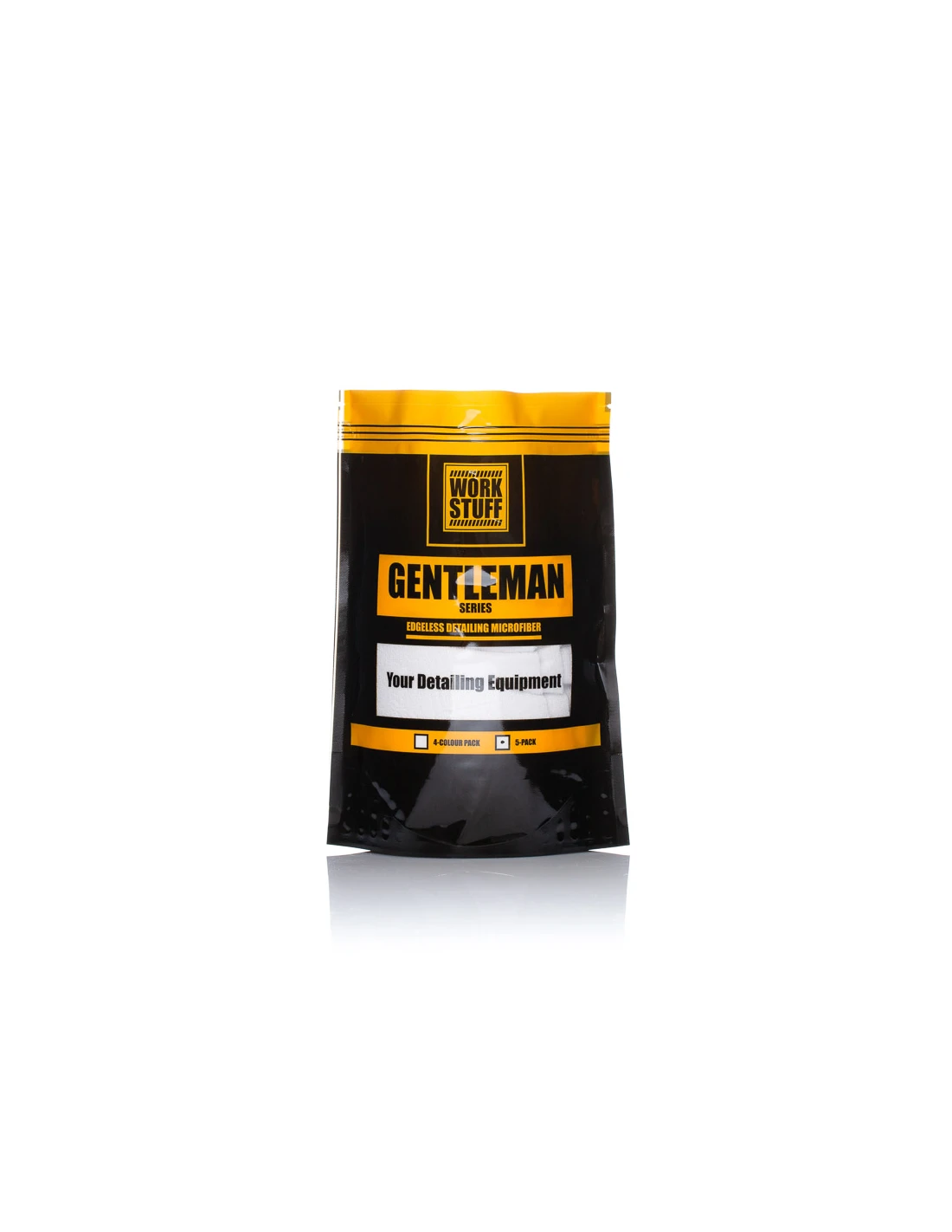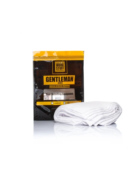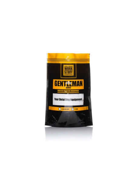 Microfiber for cleaning and care of various elements in the car. Perfect for waxing, applying coatings, using Quick Detailers, and other works inside and outside the car. Fiber has a laser cut WORK STUFF logo. GENTLEMAN Basic has a flat material on one side and a fluffy material on the other. Thanks to this, you can apply the product on one side and then clean thoroughly on the other. It is available in four colours: purple, white, yellow, and gray. Includes 5 pieces of microfiber.