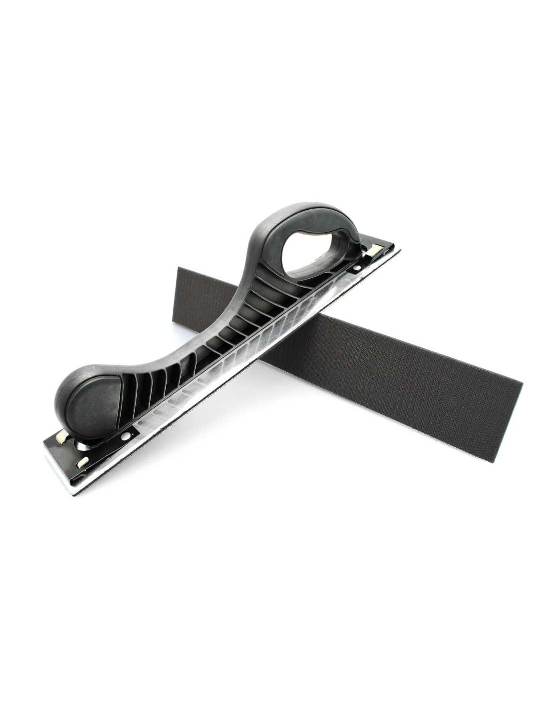 Uchwyt posiada rzep oraz dwa klipsy do mocowania materiału szlifierskiego.