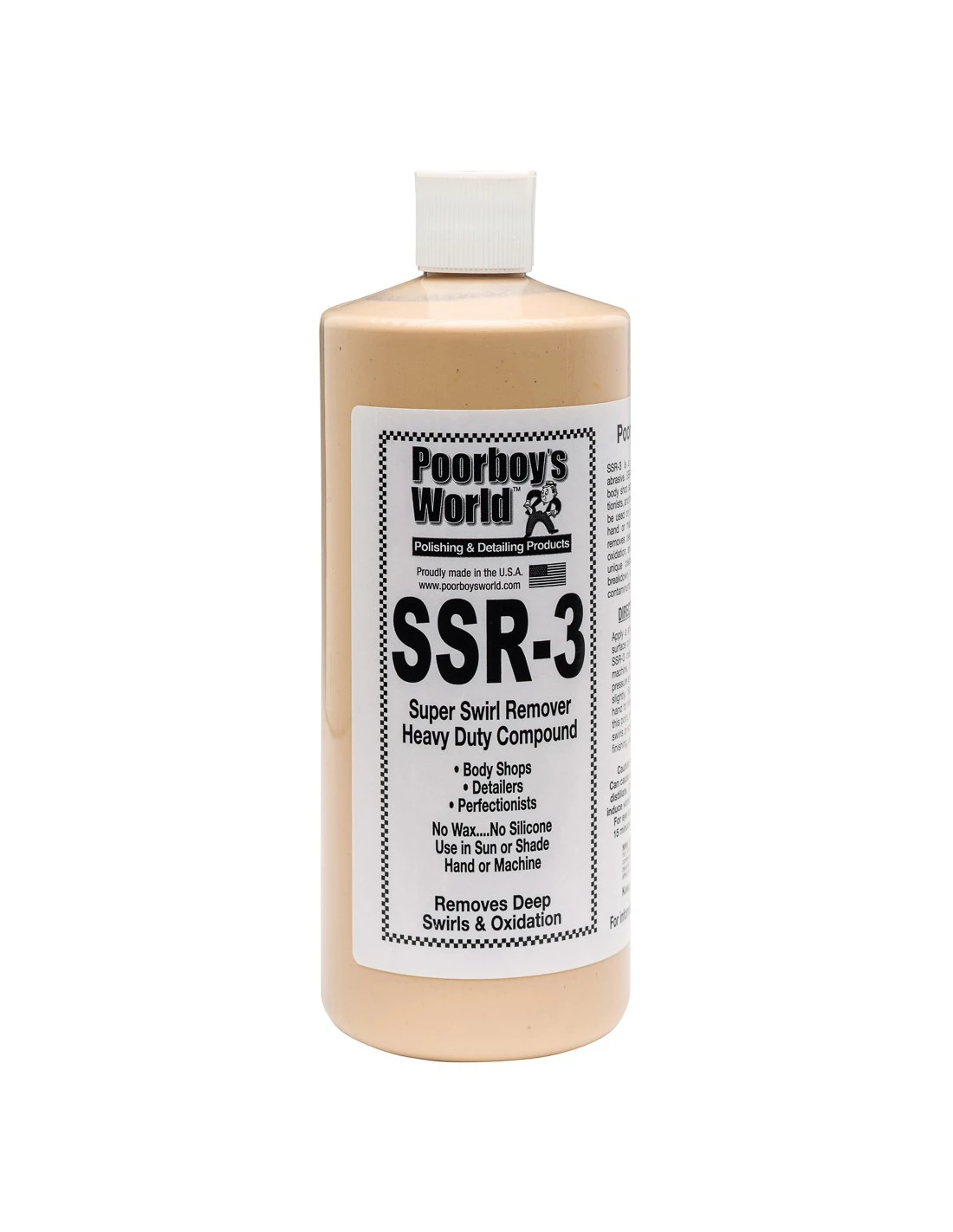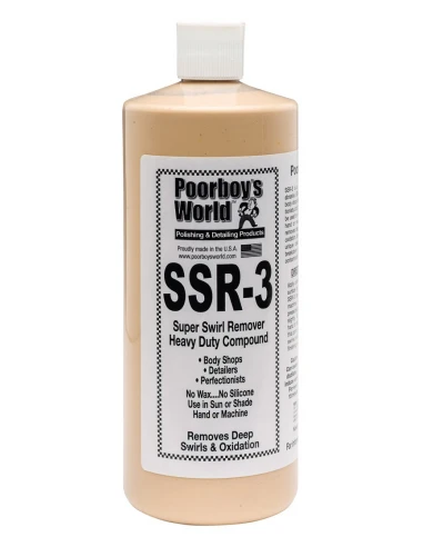 SSR3 (Heavy Duty Compound) to pasta polerska mocno ścierna, usuwa delikatne koliste ryski, oksydację, większość rys, odkurz lakierniczy.