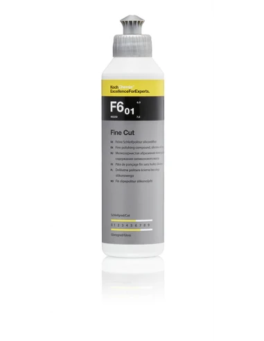 Politura maszynowa najnowszej generacji o jakości zapewnionej przez wyjątkowe tlenki glinu. Inteligentna ziarnistość zapewnia bardzo szybkie, całkowite usuwa zarysowań z myjni samochodowych i podobnych śladów użytkowania oraz nadaje lakierowi długo utrzymujący się, głęboki połysk. Bezproblemowo usuwa ślady po szlifowaniu mediami polerskimi o gradacji aż do P2500. Delikatna pasta polerska Fine Cut F6.01 nadaje się tym samym do perfekcyjnej obróbki średnio lub silnie zwietrzałych lakierów. Idealnie dostosowana do obróbki lakierów odpornych na zarysowania.