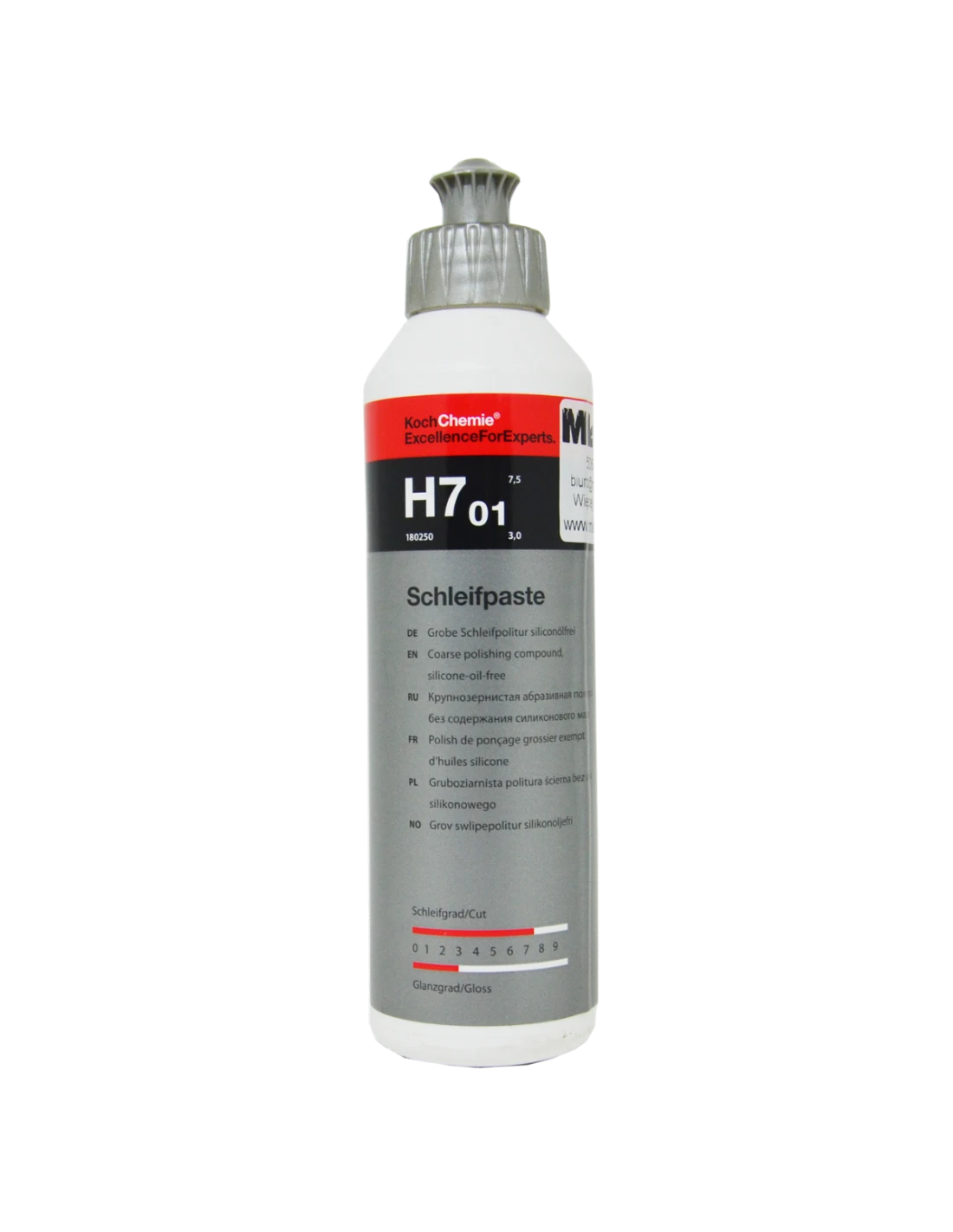 Silnie ścierna pasta polerska służąca szybkiej obróbce silnie zniszczonych lakierów, korekcie błędów lakierniczych i głębokich zadrapań oraz efektywnego usunięcia mgły lakierniczej i defektów w świeżych lakierach reparacyjnych. usuwa szlif o granulacji 1500 bez problemu zostają usunięte. Preparat zawiera specjalnie dobrane ciała szlifujące na bazie tlenków aluminium. Nie zawiera silikonu.