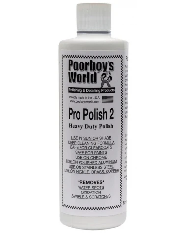 POORBOY’S Pro Polish 2 to wzmocniona wersja Proffessional Polish -bestsellerowego cleanera Poorboy’s World. O ile Proffessional Polish nie zawiera cząsteczek ściernych i bazuje na chemicznych właściwościach czyszczących to jego wzmocniona odmiana Pro Polish 2 nie tylko oczyszcza lakier ale i pozwala na korekcję jego defektów dzięki zawartości cząstek ściernych.