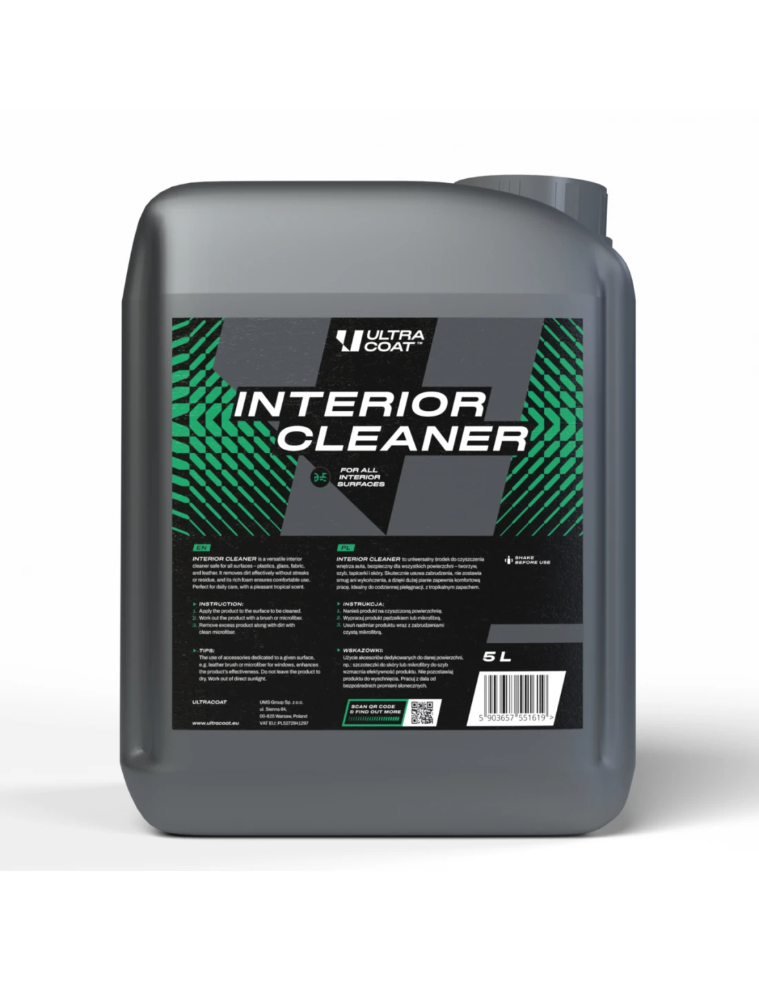 Interior Cleaner to wszechstronny środek czyszczący do pielęgnacji wszystkich wewnętrznych elementów samochodu. Spośród innych cleanerów do wnętrz, produkt wyróżnia to, że możemy stosować go zarówno na elementach z tworzyw, kokpicie i elementach lakierowanych jak również na szybach, na których nie pozostawia smug.