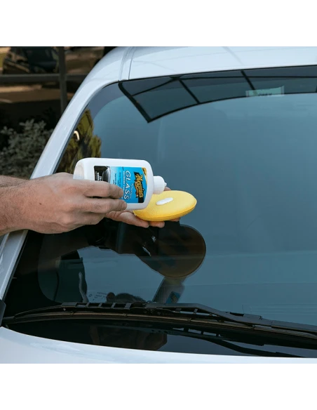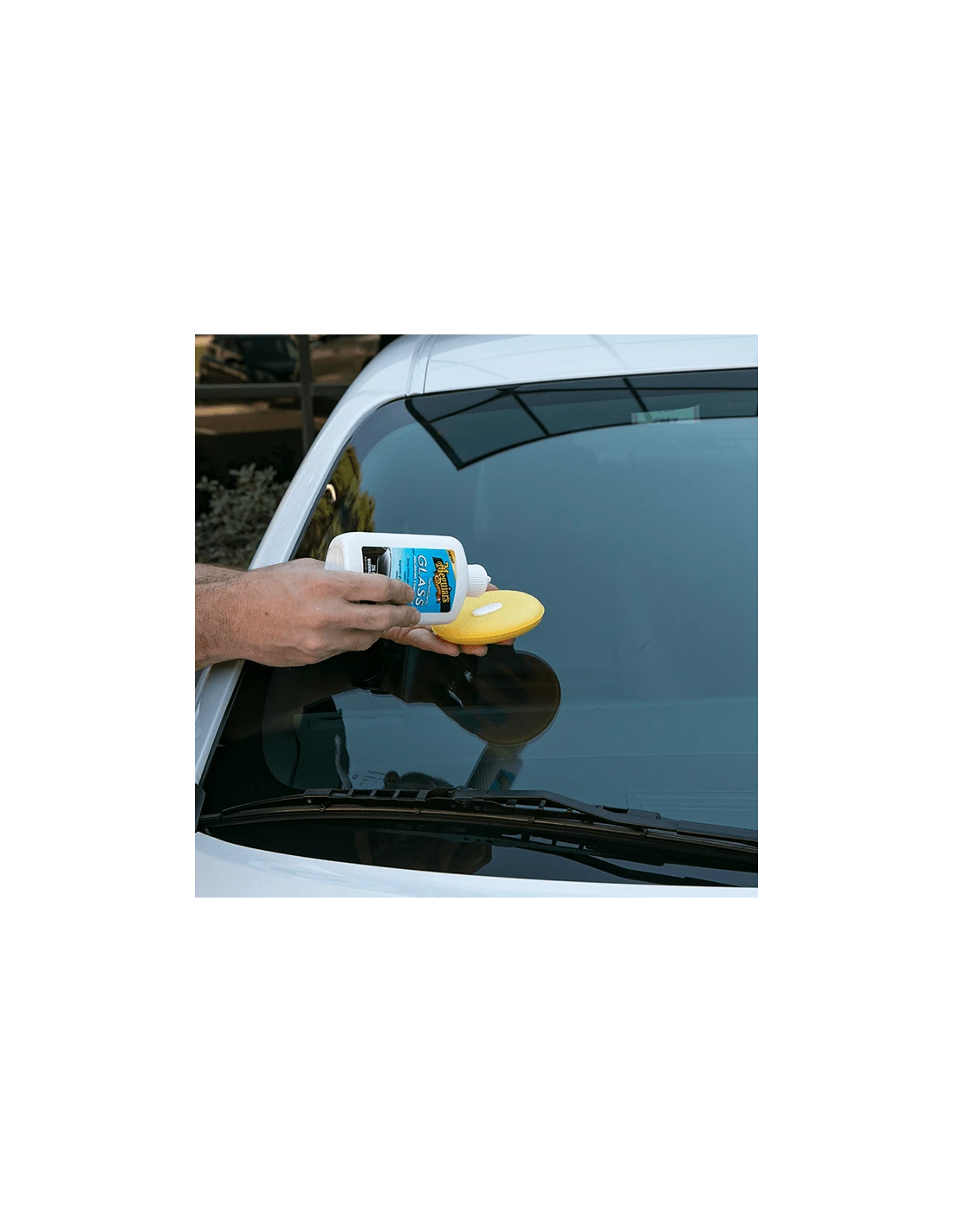 1. Nałóż Glass Polishing Compound na piankowy aplikator lub ręcznik i przetrzyj powierzchnie szkła lekko lub średnio dociskając nakładającymi się przejściami. Zastosuj na jeden element na raz.