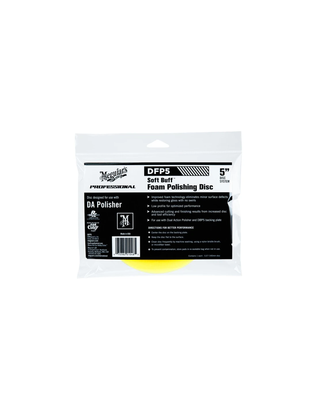 Nowa, nisko profilowe, innowacyjna gąbka polerska Meguiar’s Soft Buff DA Foam Polishing 5” jest zoptymalizowana do zaawansowanych efektów polerujących dzięki zwiększonej efektywności gąbki polerskiej jak i maszyny polerskiej DA. Udoskonalona technologia gąbki polerskiej usuwa drobne uszkodzenia powierzchni nadając połysk bez kolistych zarysowań.