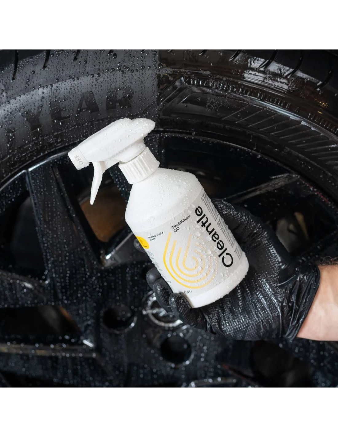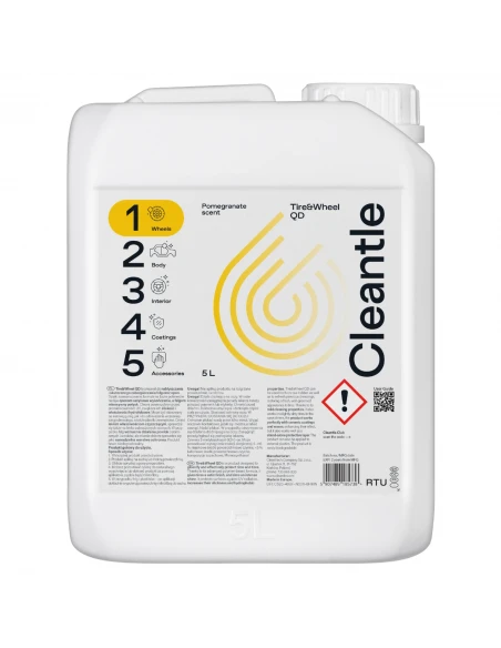 Tire&Wheel QD to preparat do nabłyszczania i ochrony felg oraz opon. Polimerowa formuła nadaje oponom satynowe wykończenie lub intensywny połysk, w zależności od sposobu aplikacji. Dzięki właściwościom hydrofobowym i zwiększonej śliskości powierzchnie dłużej pozostają czyste, a ich mycie staje się prostsze i szybsze. Produkt sprawdza się zarówno na surowej gumie, jak i do odświeżenia wcześniejszego dressingu. Lekkie właściwości czyszczące pozwalają stosować go także na lekko zabrudzonych oponach – jest idealny do szybkich poprawek. Na felgach wzmacnia działanie powłok ceramicznych i wosków lub działa jako samodzielna ochrona.