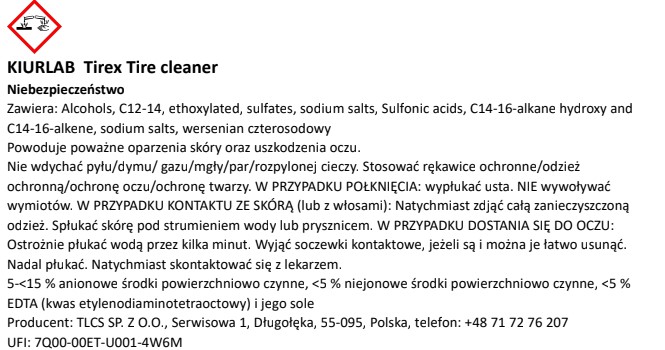 - skutecznie czyści opony – TIRE-X marki KiurLab skutecznie usuwa uporczywy brud z opon zapewniając im czystość i świeżość