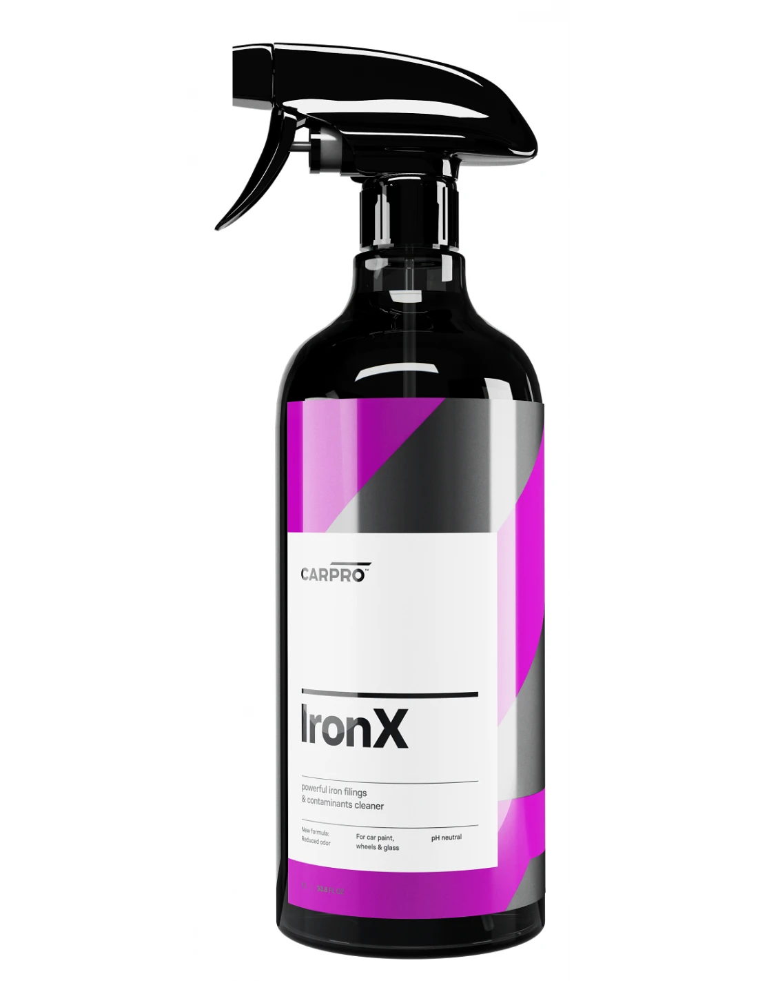 Płyn o neutralnym pH przeznaczony do usuwania zanieczyszczeń metalicznych z powierzchni lakieru samochodowego oraz felg. Zanieczyszczenia przemysłowe i metaliczne takie jak opiłki metalu z szyn kolejowych lub tarczy hamulcowych wbijają się w powierzchnię lakieru stanowiąc ogniska korozji. Iron X usuwa zanieczyszczenia metaliczne rozpuszczając je.