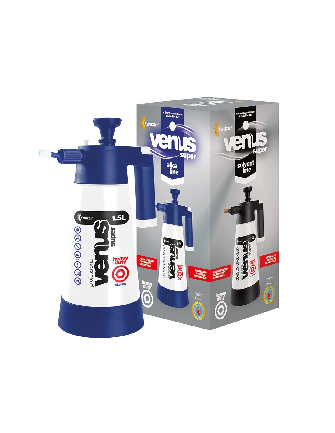 Opryskiwacze ciśnieniowe Venus Pro+ Super 360 HD ALKALINE przeznaczone są do aplikacji środków chemicznych na małych i średniej wielkości powierzchniach. Wszystkie uszczelnia opryskiwacza wykoanae są z Vitonu. Dzięki temu opryskiwacz charakteryzuje się podwyższoną odpornością na środki kwaśne i zasadowe.