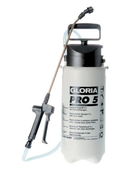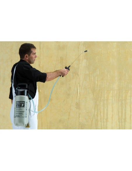 GLORIA Pro 5 ma pojemność 5 litrów i jest wyposażona w wytrzymałe uszczelki FKM oraz lancę natryskową z dyszą płaskostrumieniową typu 8002 E. Duży lejek do napełniania i poręczny pasek do przenoszenia zapewniają wygodę i łatwość pracy. Opryskiwacz idealnie nadaje się do natryskiwania rozpuszczalnych w wodzie chemikaliów budowlanych, takich jak grunty, grunty głęboko gruntujące i grunty reaktywne, a także do nawilżania tapet w celu łatwego usuwania.