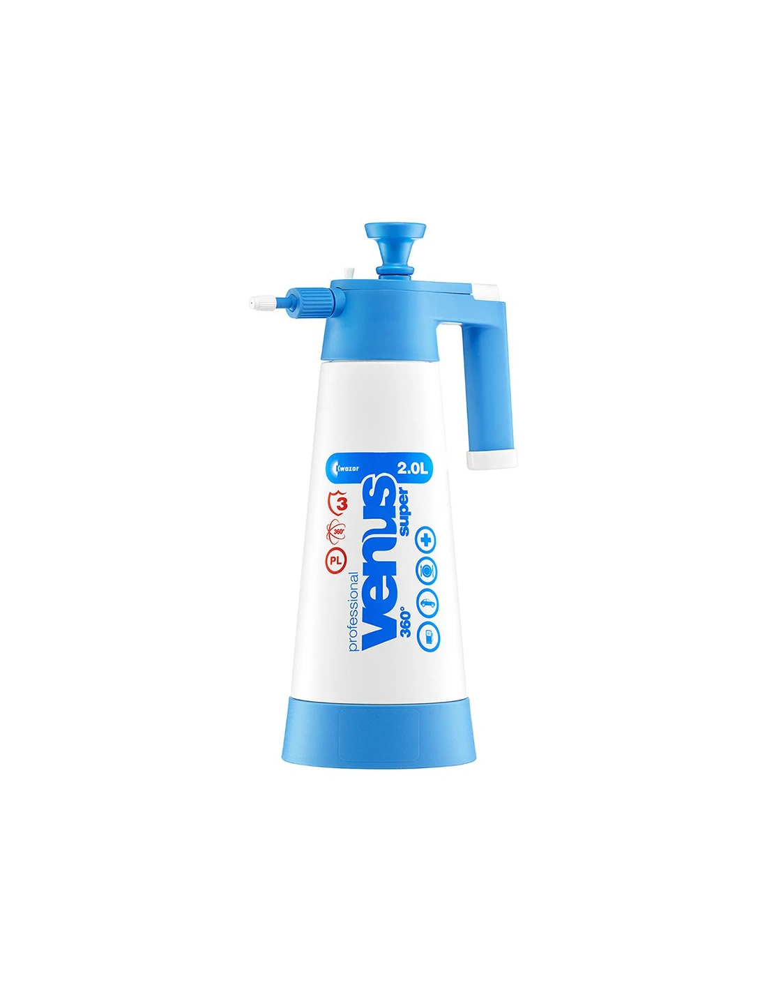 Opryskiwacze ciśnieniowe Venus Pro+ Super 360 przeznaczone są do aplikacji środków chemicznych na małych i średniej wielkości powierzchniach. Wszystkie uszczelnia opryskiwacza wykoanae są z Vitonu. Dzięki temu opryskiwacz charakteryzuje się podwyższoną odpornością na środki kwaśne i zasadowe.