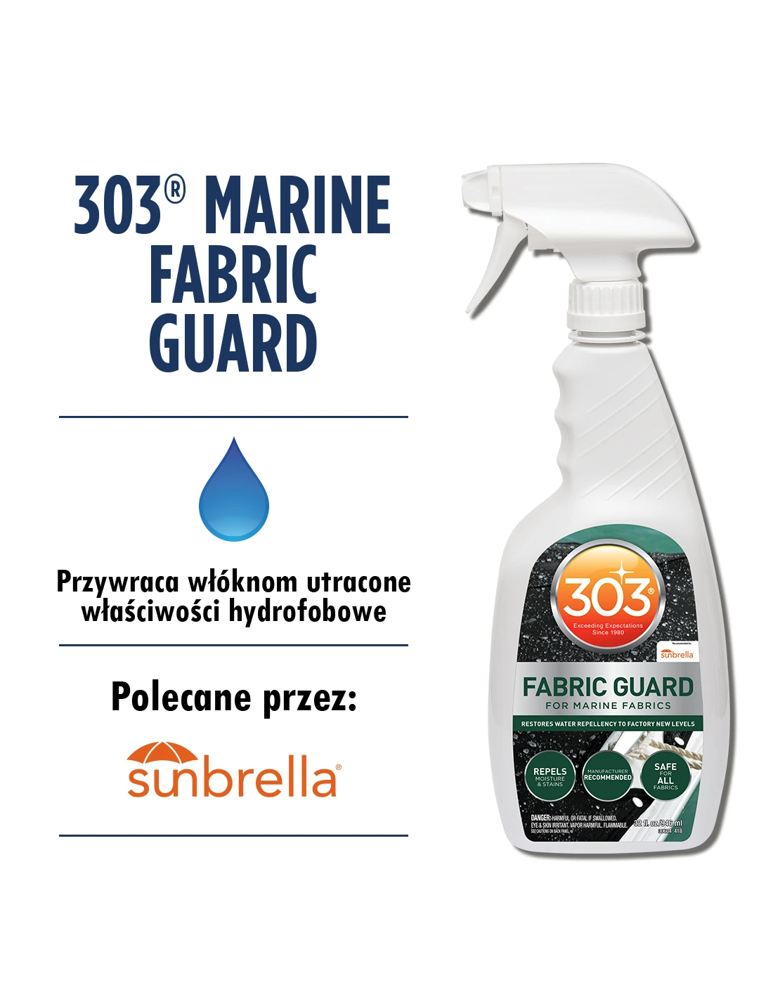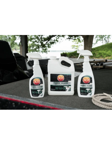 Marine Fabric Guard tworzy silną tarczę, która zwiększa właściwości hydrofobowe i chroni przed plamami z oleju i wody. Do użytku na materiałowe pokrowce na łodzie, markizy, żagle dakronowe. Po zastosowaniu na czyste i suche tkaniny, przywraca utraconą hydrofobowość i odporność na plamy. Z Marine Fabric Guard utrzymaj swoje ulubione tkaniny czyste i lśniące przez wiele lat.