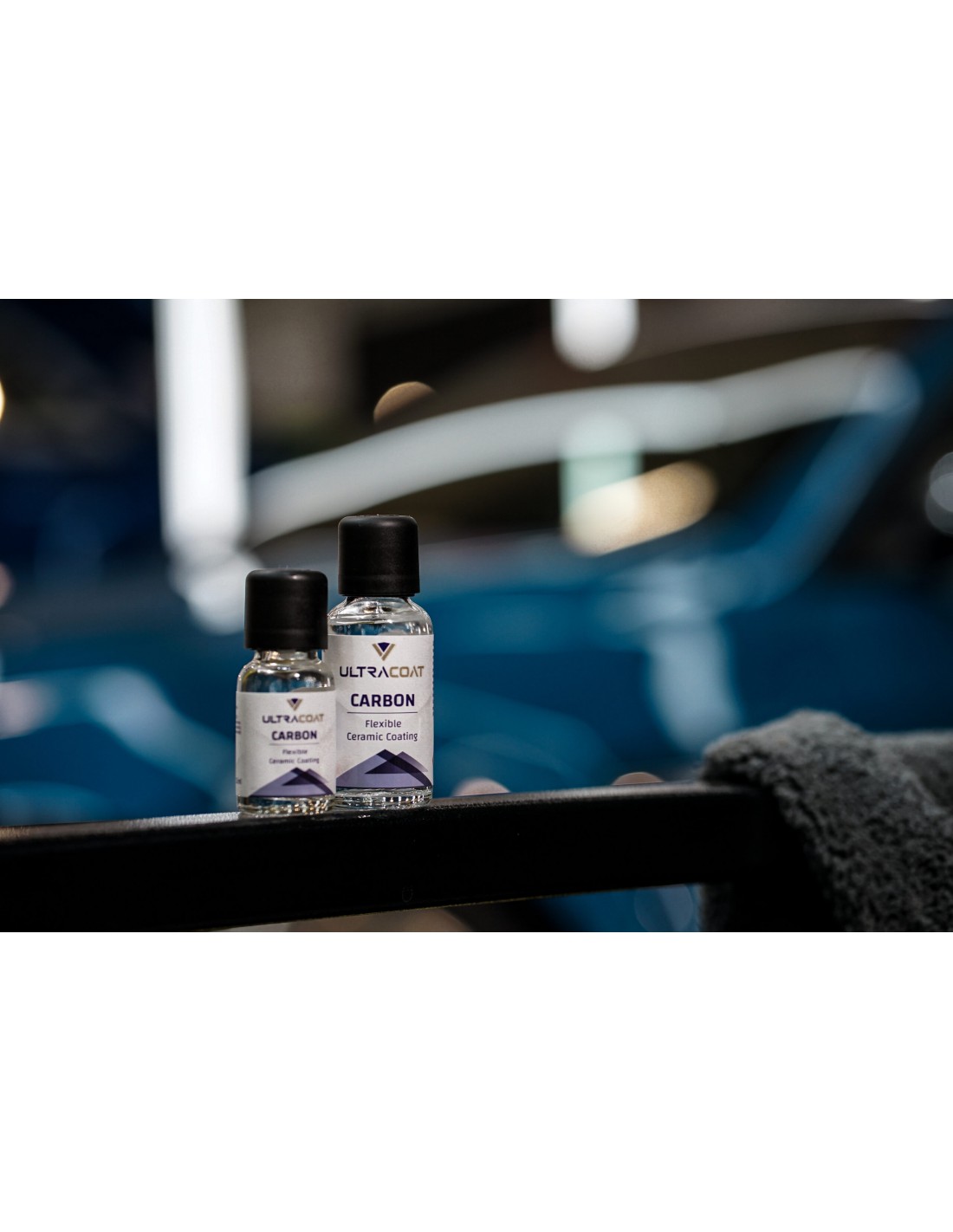 Lakier zabezpieczony ULTRACOAT Carbon nabiera spektakularnego połysku i szklistości, a kolor zyskuje przyciemnianie i piękną głębię. Powierzchnia staje się śliska, co przy osuszaniu auta jest nie tylko bardzo użyteczne, ale też ogranicza powstawanie mikrozarysowań. W celu osiągnięcia jeszcze lepszych efektów wizualnych oraz maksymalnej śliskości, po 30 minutach możesz zaaplikować drugą warstwę powłoki.