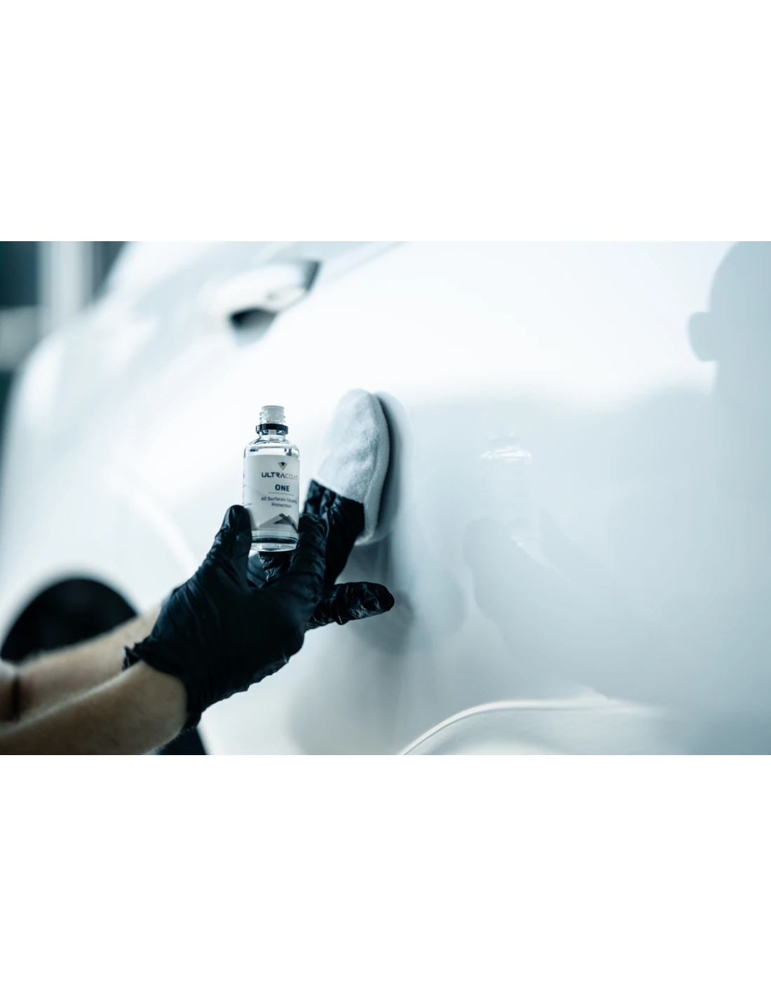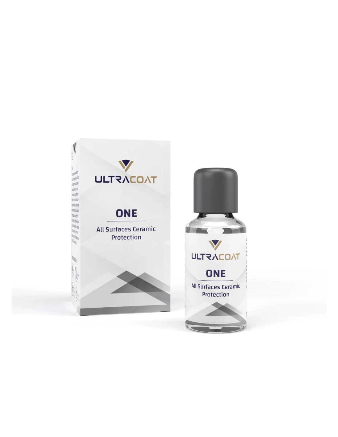 One to uniwersalna powłoka ceramiczna do ochrony zewnętrznych elementów auta. Świetnie sprawdza się przy zabezpieczaniu lakieru, felg, elementów plastikowych, a nawet szyb, na których tworzy tzw. efekt niewidzialnej wycieraczki. Miłośnicy wysokiego połysku doceniają One ze względu na właściwości znacząco podbijające połysk auta. Powłoka wiąże się z chronioną powierzchnią na zasadzie wiązań kowalencyjnych i dzięki twardości 9H bardzo skutecznie chroni powierzchnię przed mikrorysami, utratą koloru spowodowaną przez działanie promieni UV, ptasimi odchodami, solą drogową i, co najważniejsze, przed korozją. ULTRACOAT One to „must have” w każdym profesjonalnym studiu detailingowym.
