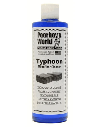 Typhoon Microfiber Cleaner to wysoce skoncentrowany detergent do prania produktów wykonanych z mikrofibry takich jak ręczniki, szmatki, pady czy aplikatory. Typhoon Microfiber Cleaner jest bardzo skuteczny w usuwaniu pozostałości po woskach, pastach polerskich oraz innych produktach używanych do pielęgnacji samochodów. W przeciwieństwie do standardowych detergentów do prania, Typhoon Microfiber Cleaner skutecznie doczyszcza mikrowłókna nadając im wyjątkową miękkość i zapewnia najwyższą efektywność pracy jak i przedłużenie trwałości mikrofibry.